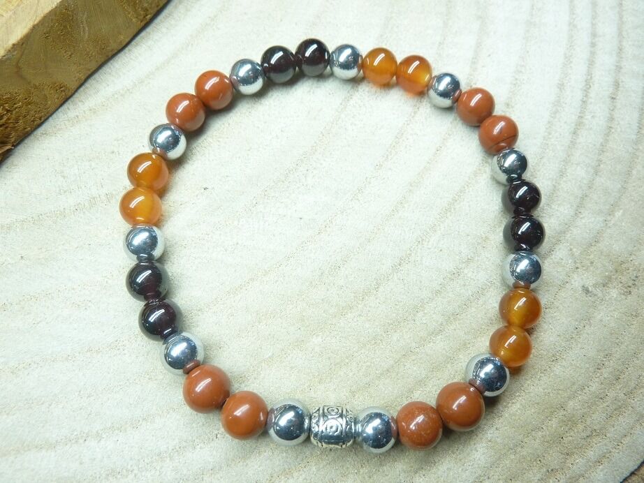 Rechargement-Dynamisation du bracelet Cornaline-Jaspe rouge-Hématite-Grenat