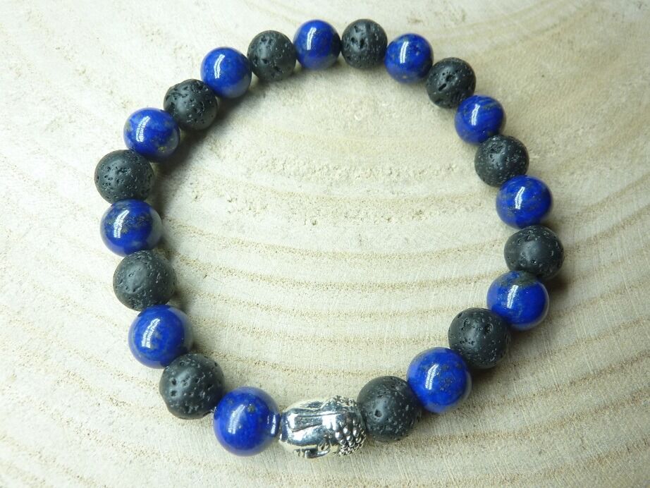 Bracelet Lapis lazuli-Pierre de lave-Bouddha