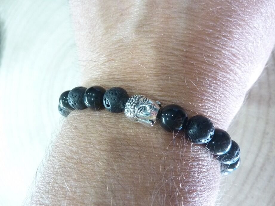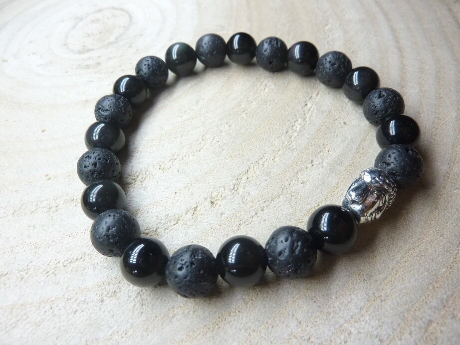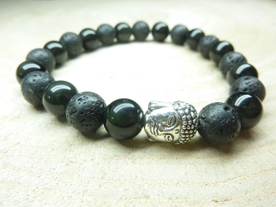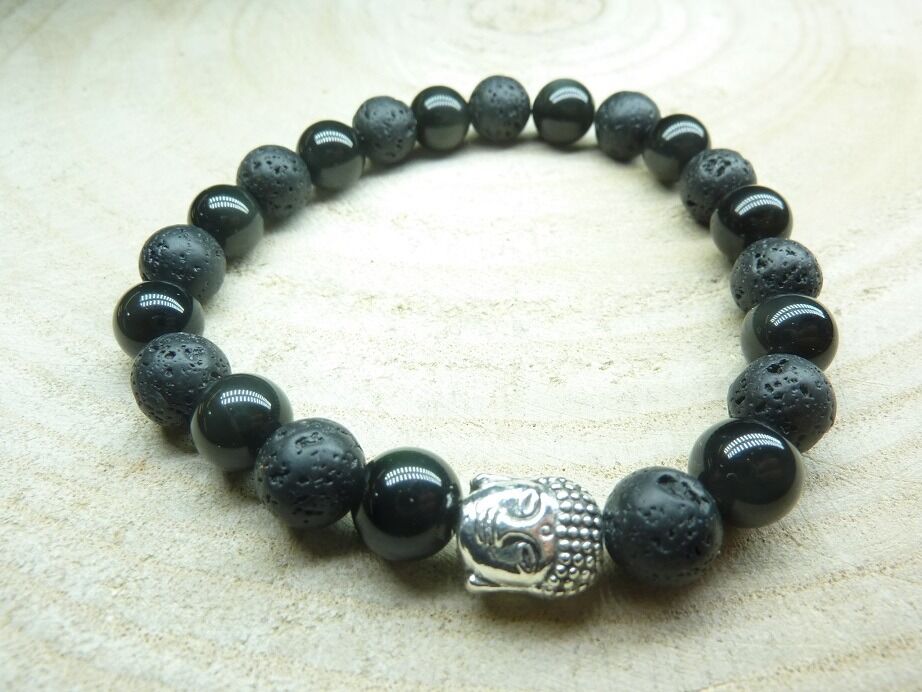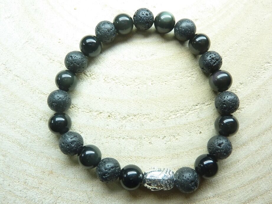 Bracelet Obsidienne oeil céleste-Pierre de lave-Bouddha