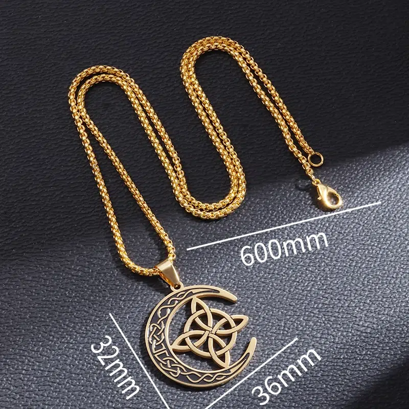 Pendentif noeud de sorcière (Wiccan) lune ref Or 04