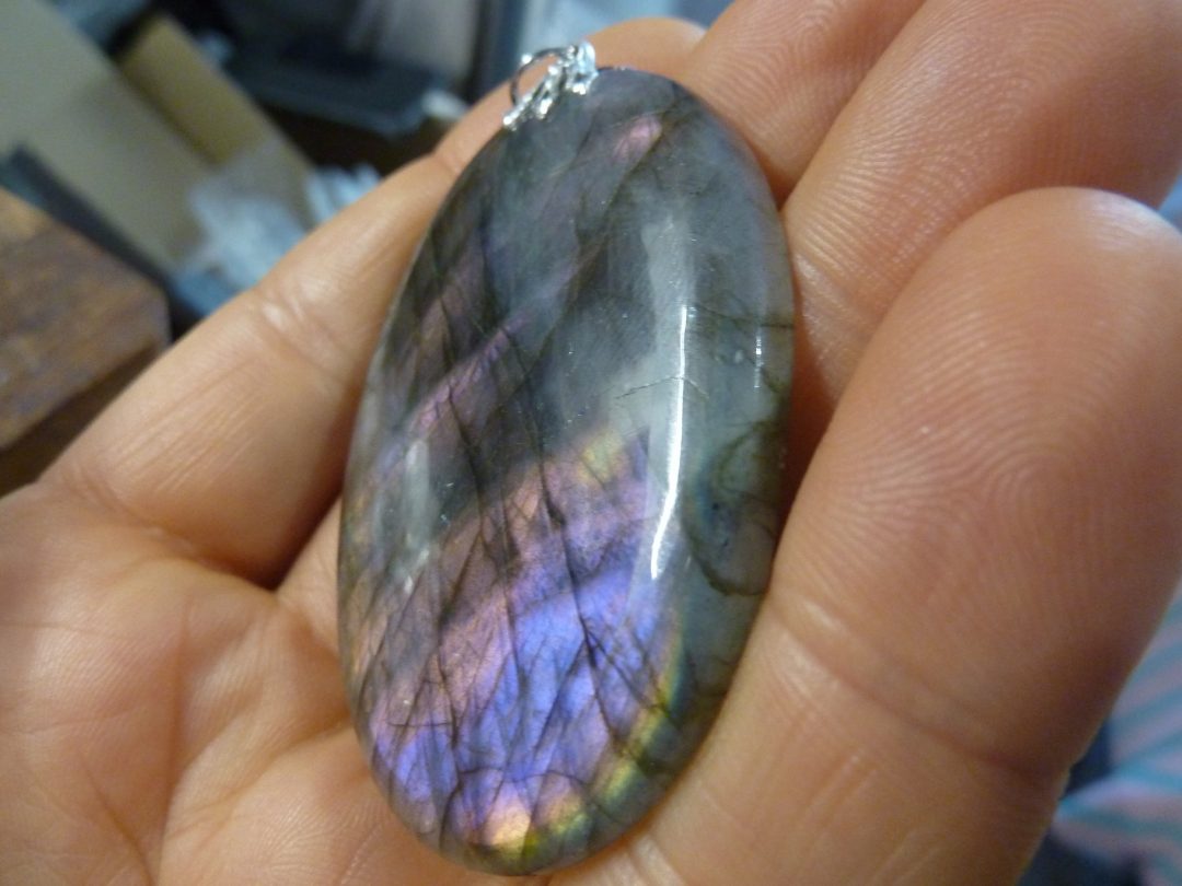 La Labradorite violette mauve ,très puissante,ouverture des sphéres supérieur,du chakra coronal troisième oeil, sagesse,paix de l’esprit,très protectrice et malheureusement très rare