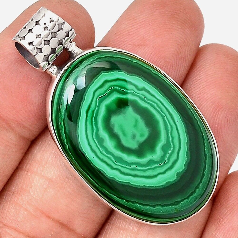 Sublime pendentif malachite monture argent 925 REF 3040