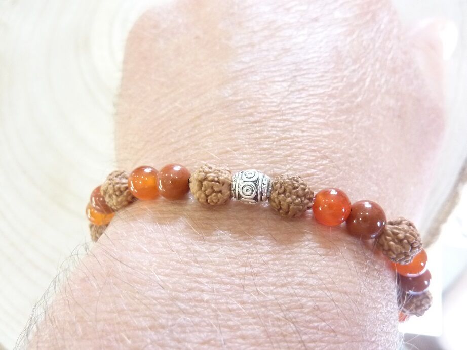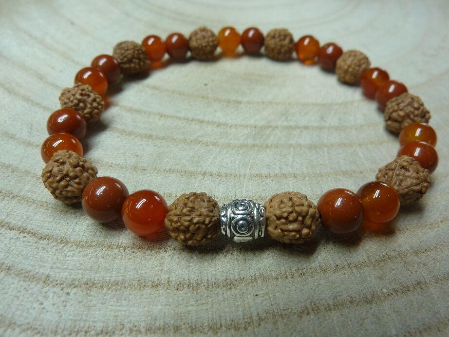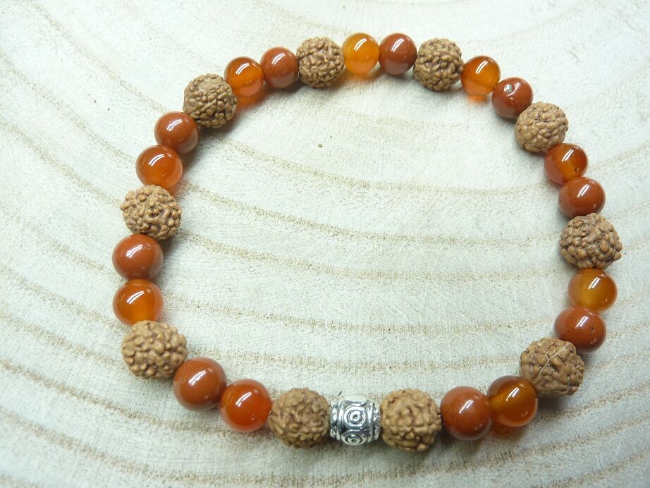 Vous recevrez un Bracelet Rudraksha-Cornaline-Jaspe rouge – Perles 8-6 mm de qualité similaire