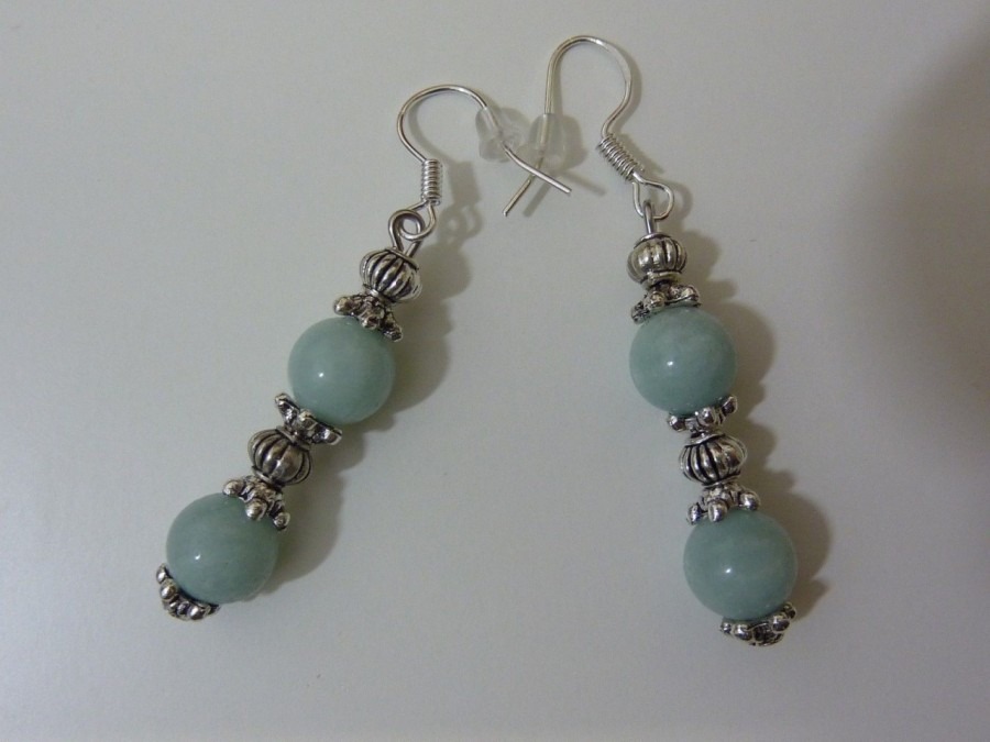BOUCLES D’OREILLES EN AMAZONITE PERLES 2 X 8 MM