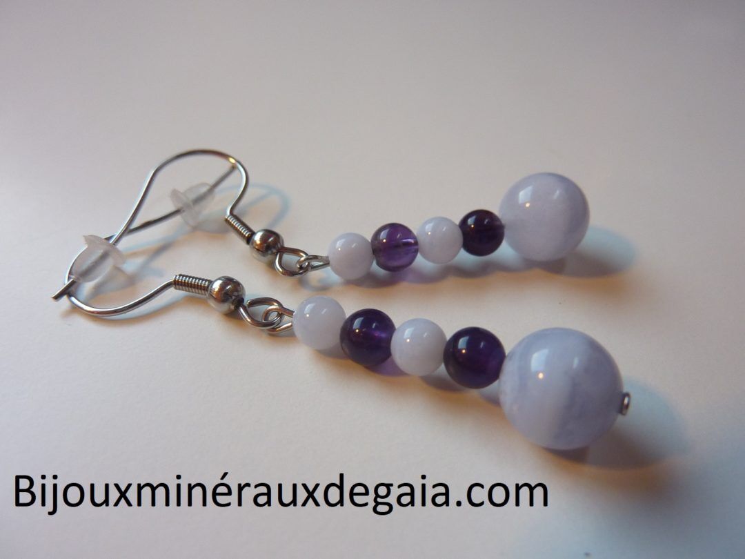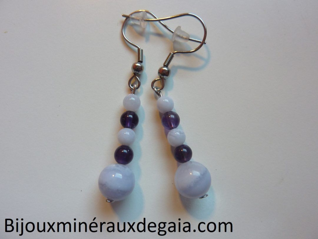 Boucles d’oreilles calcédoine bleue-Améthyste