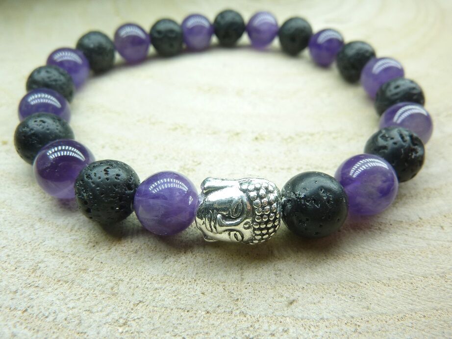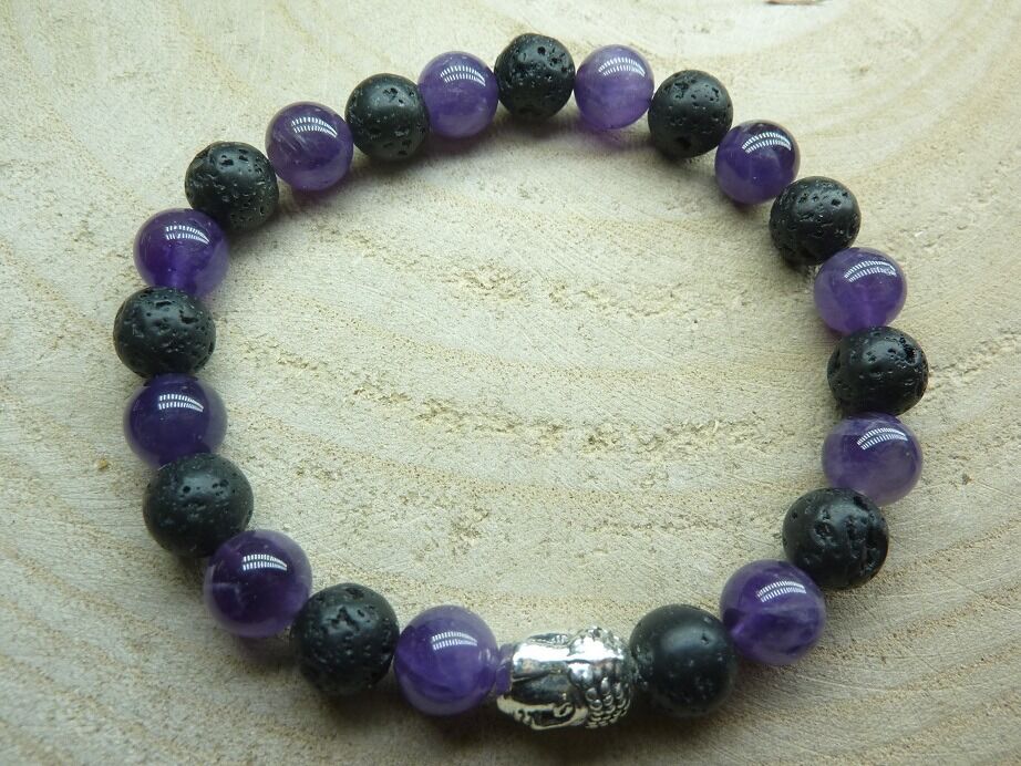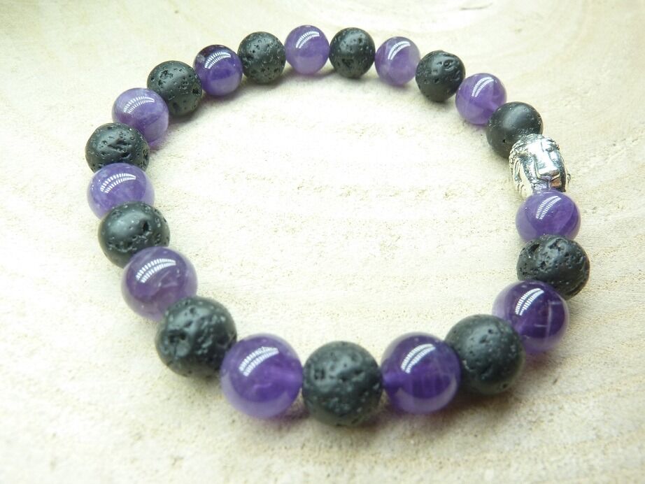 Bracelet Améthyste-Pierre de lave-Bouddha