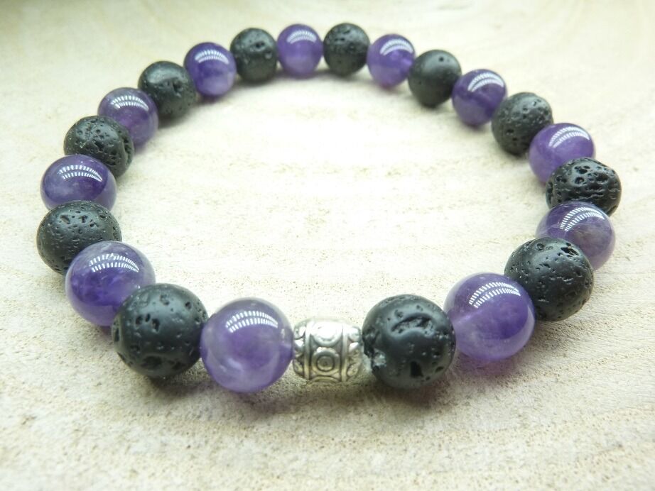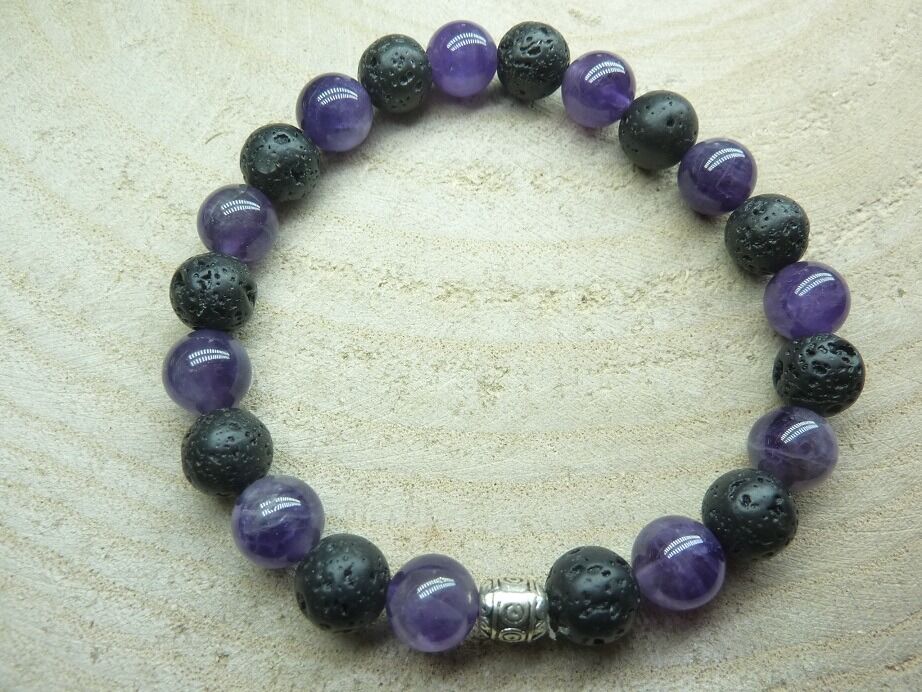 - Perles 8 mm en Améthyste et pierre de lave de grade A 100 % naturelles