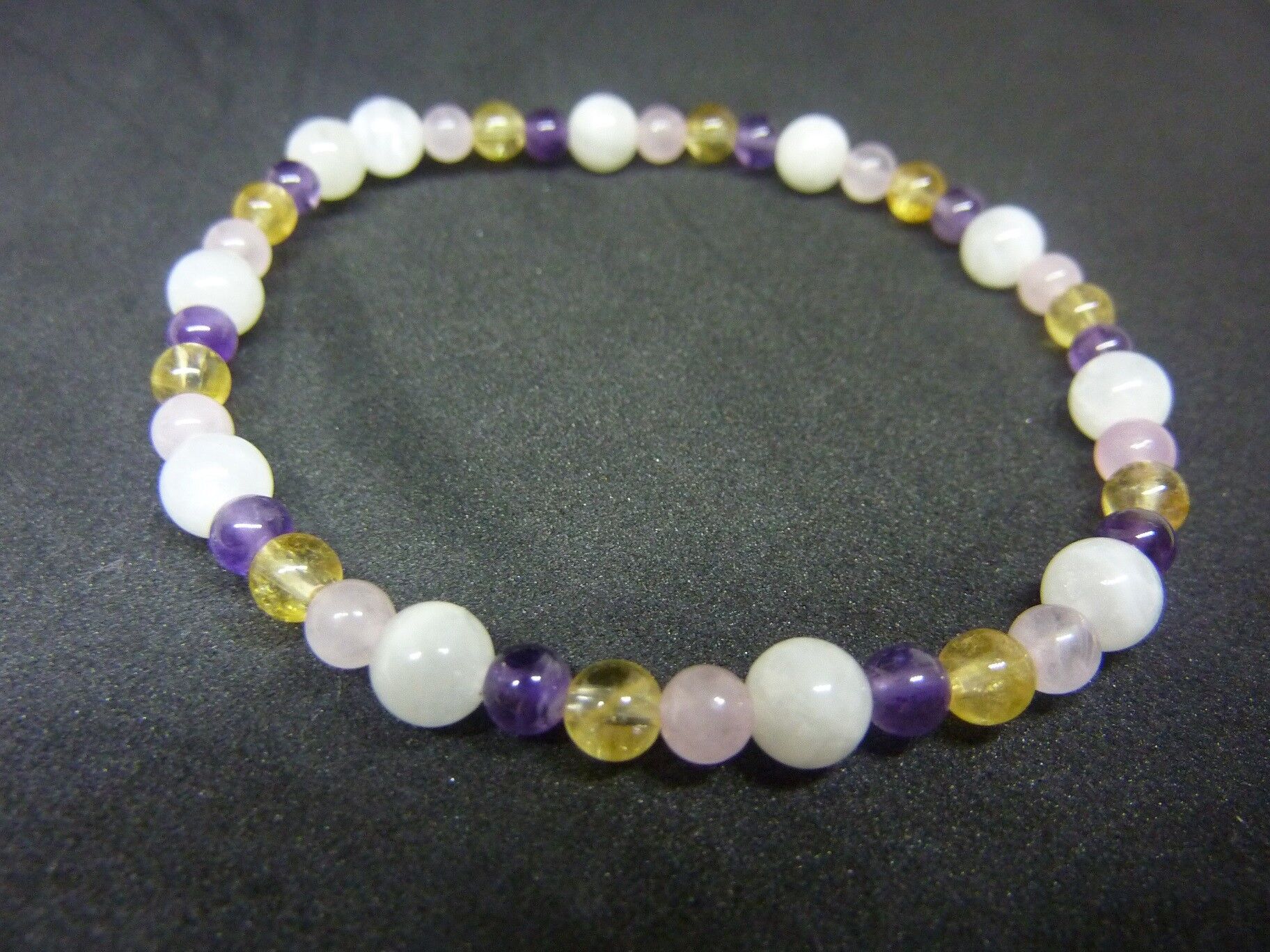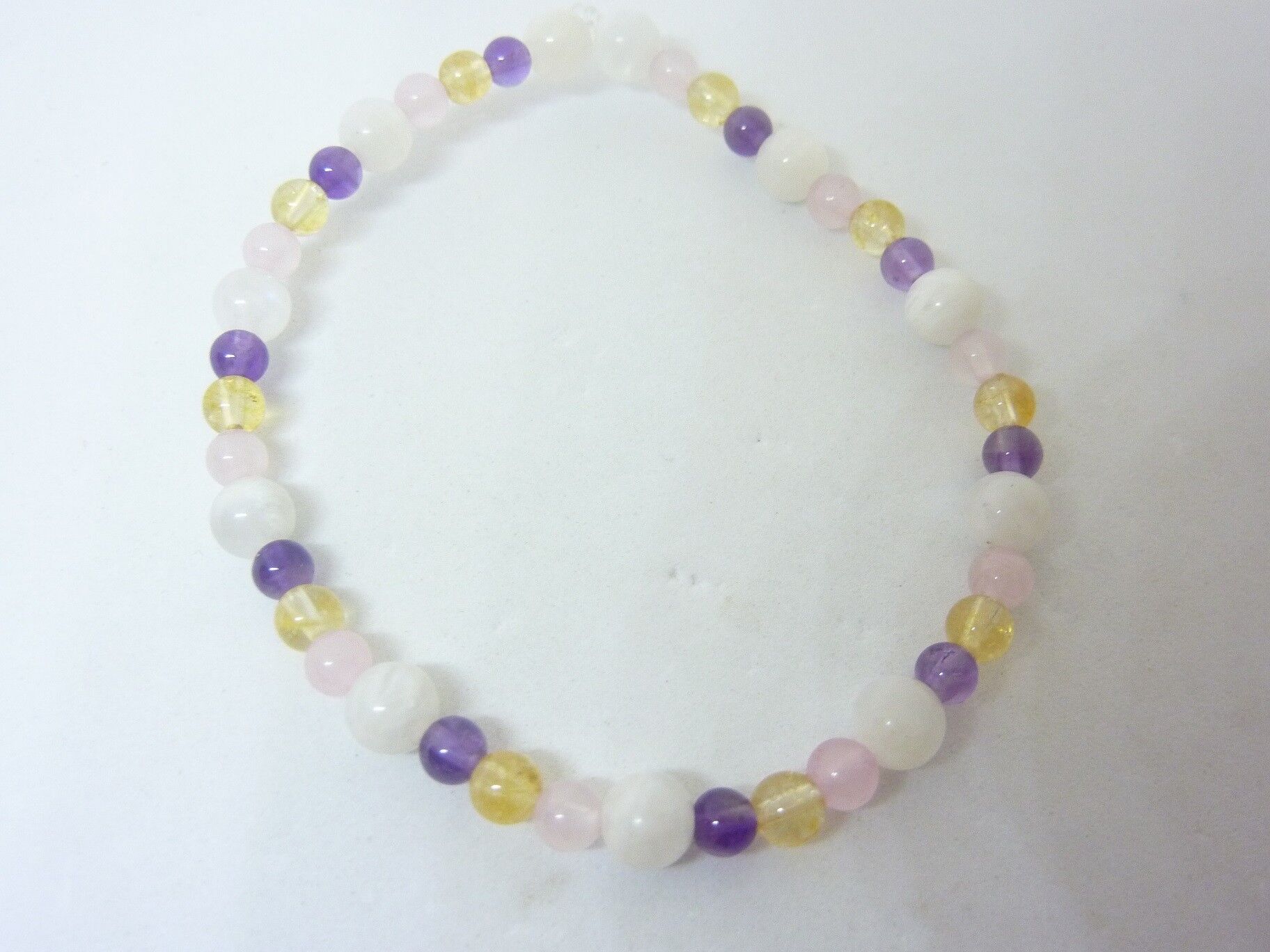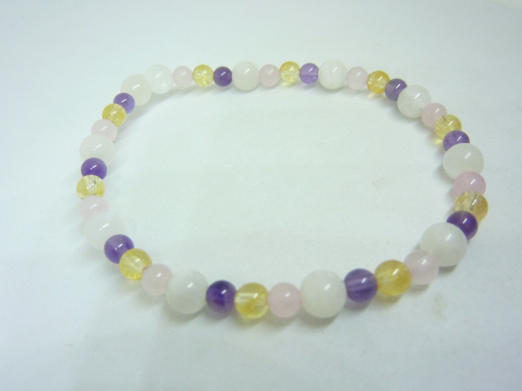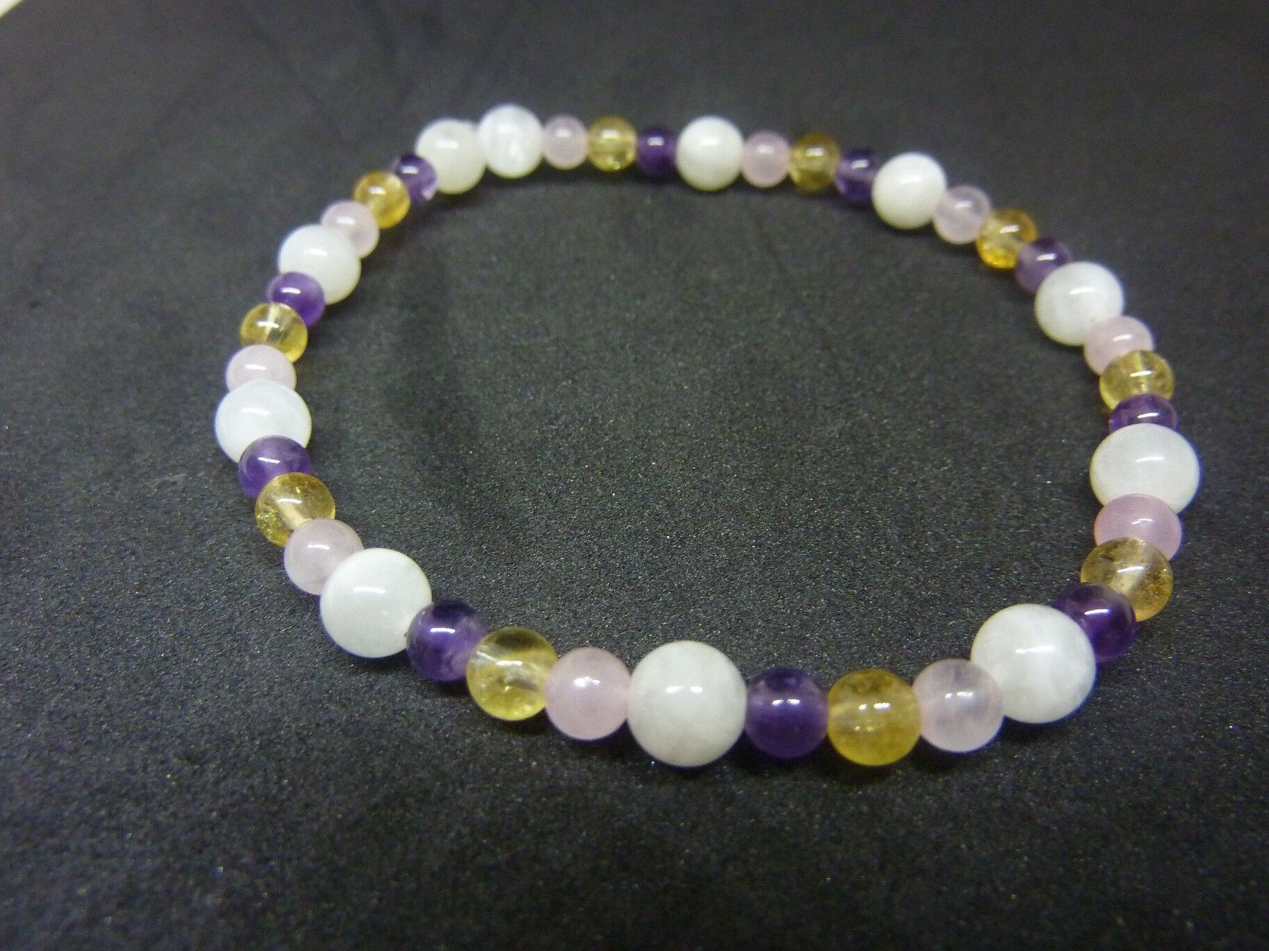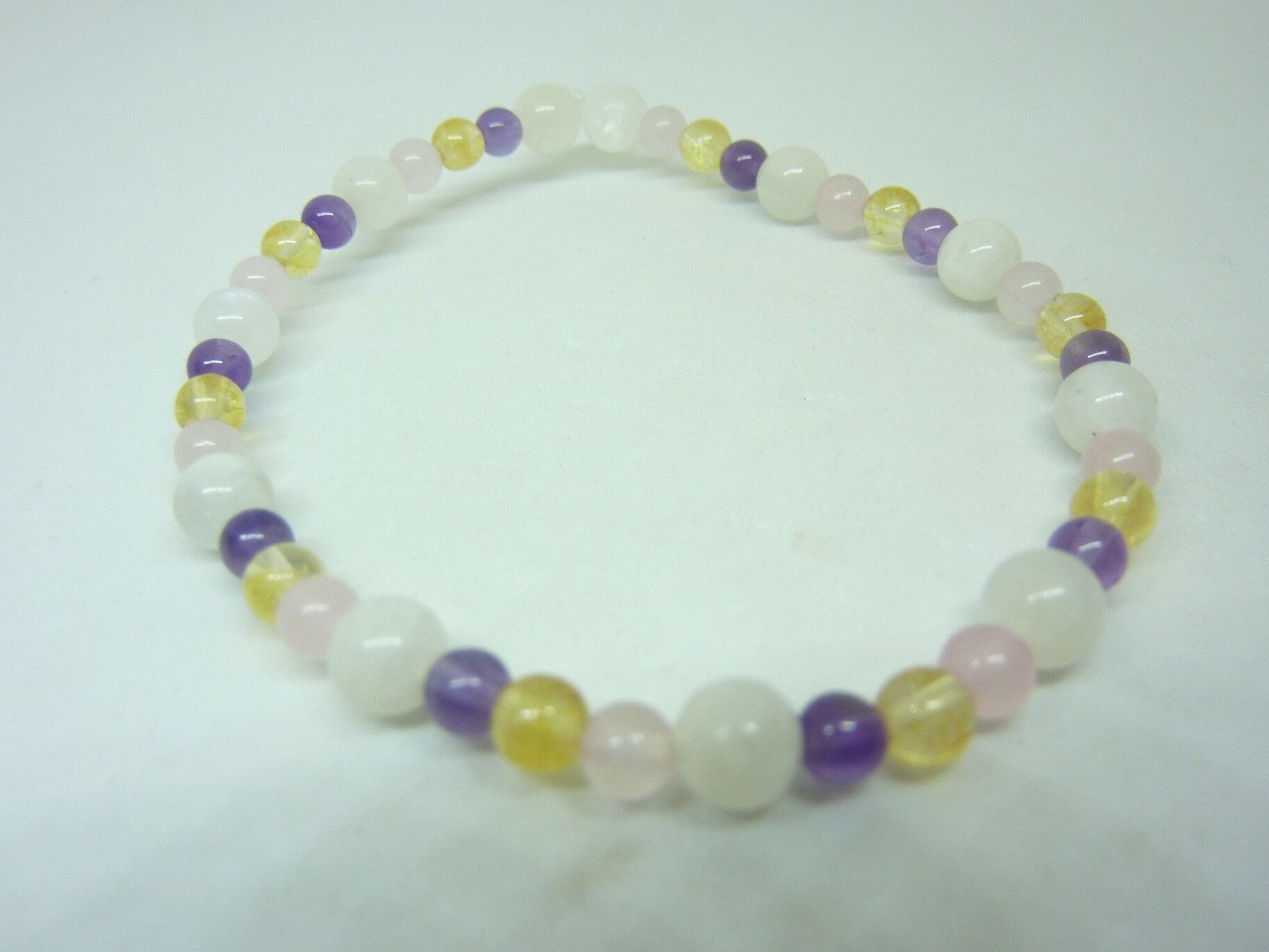 Vous recevrez un Bracelet citrine-pierre de lune-améthyste-quartz rose joie tendresse intuition de qualité similaire