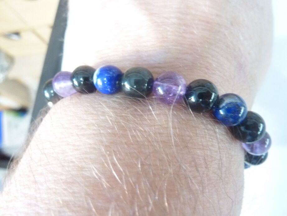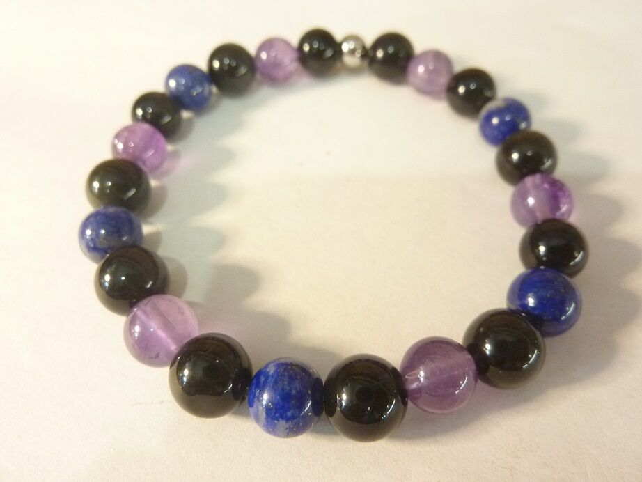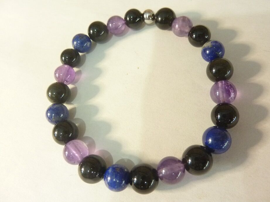 Bracelet Spinelle noir-Améthyste-Obsidienne oeil céleste-Lapis lazuli