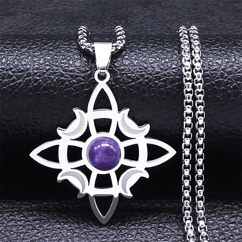 Collier pendentif noeud de sorcière (Wiccan) Améthyste