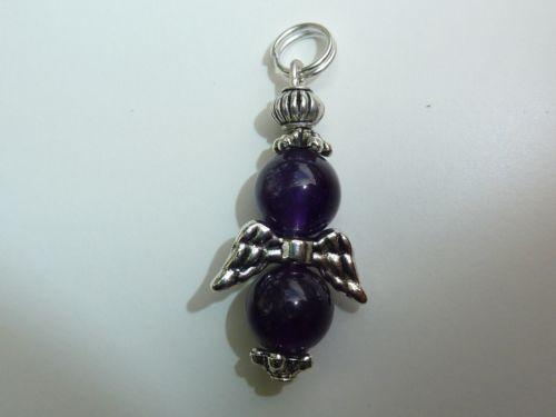 Pendentif améthyste ange perles rondes 8 mm