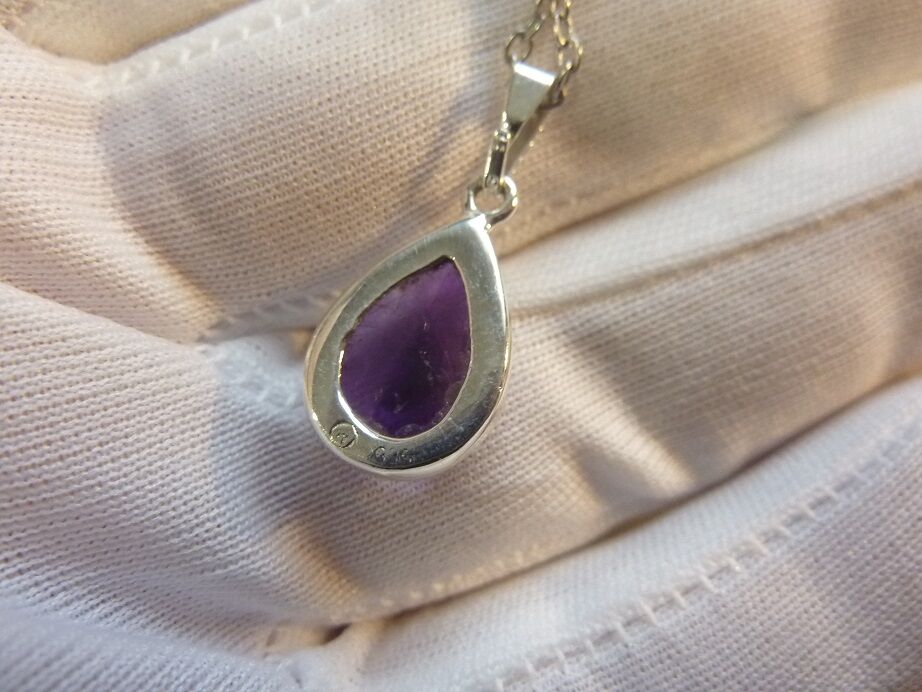 Pendentif Améthyste argent 925 +chaine acier inoxydable 45 cm