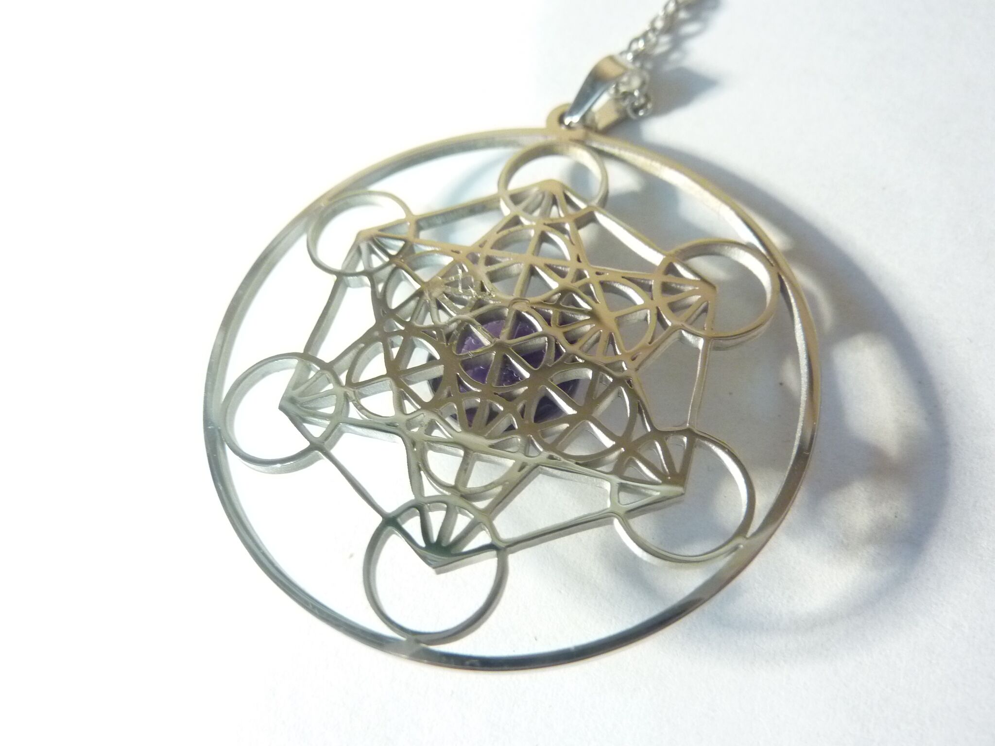 Pendentif cube de Métatron-Améthyste ref argent