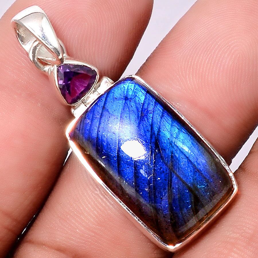 Pendentif protection labradorite-Améthyste monture argent 925 ref 6372