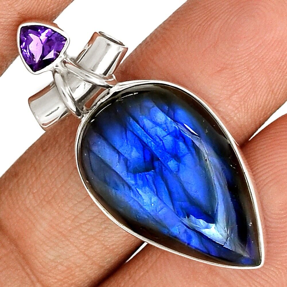 Pendentif protection labradorite et améthyste monture argent 925 ref 2190