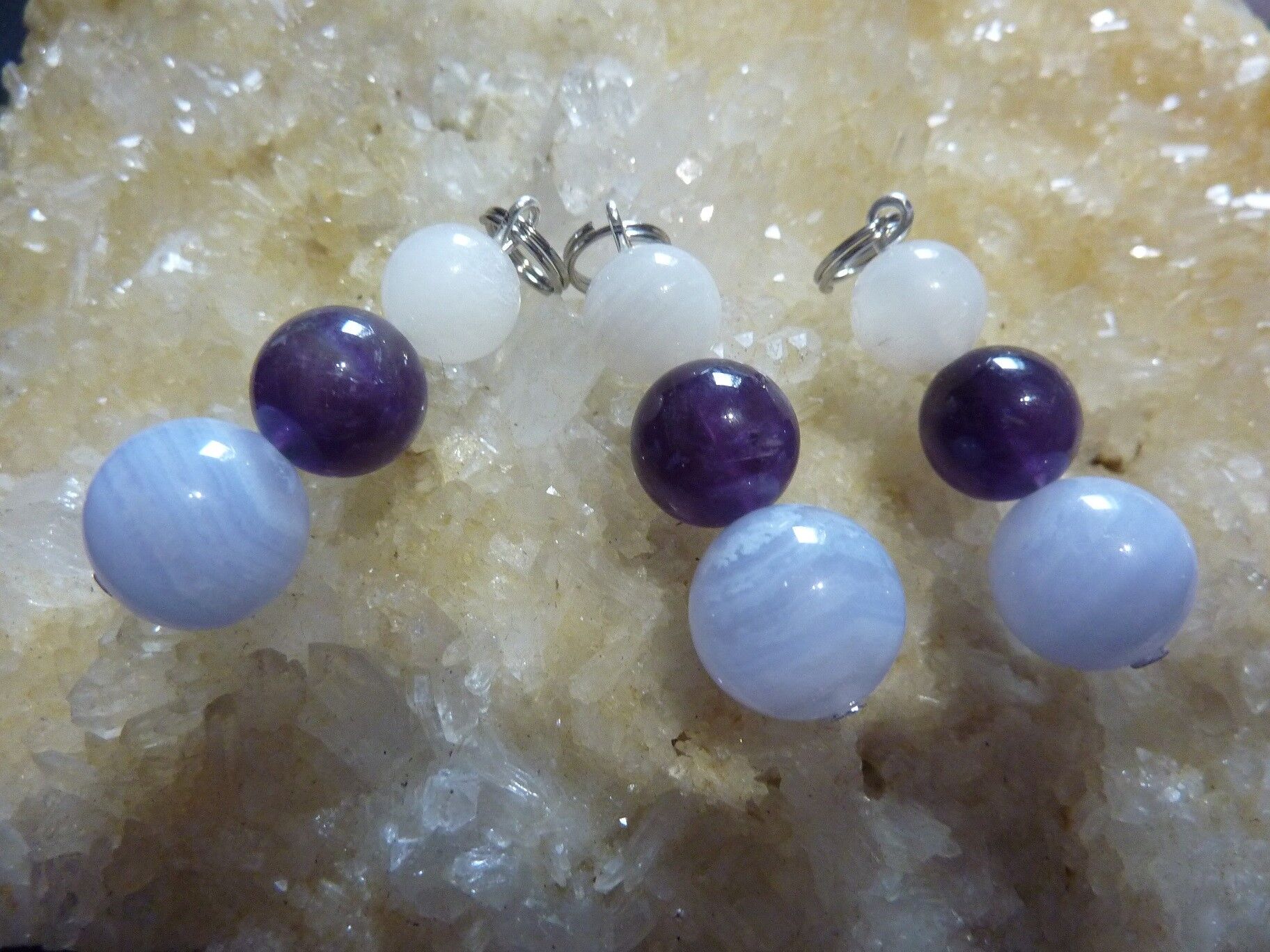 Pendentif Zénitude calcédoine bleue améthyste pierre de lune à L’unité