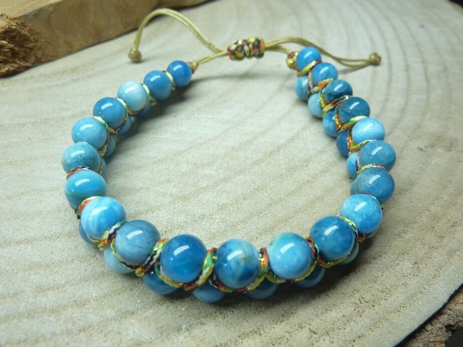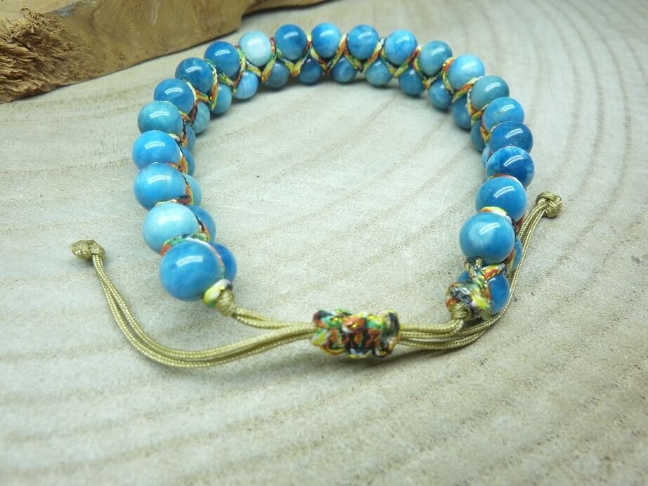 Découvrez notre magnifique bracelet Apatite réglable de type Shamballa, composé de perles rondes de 6 mm. L’Apatite est une pierre précieuse d’une grande beauté, qui se distingue par sa couleur vive et son éclat naturel.