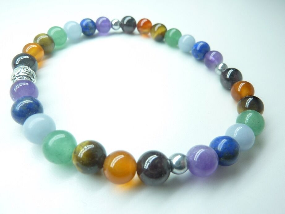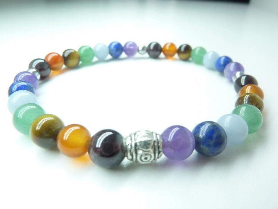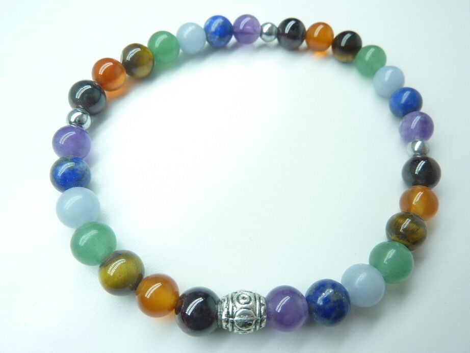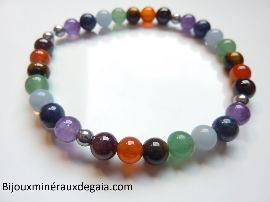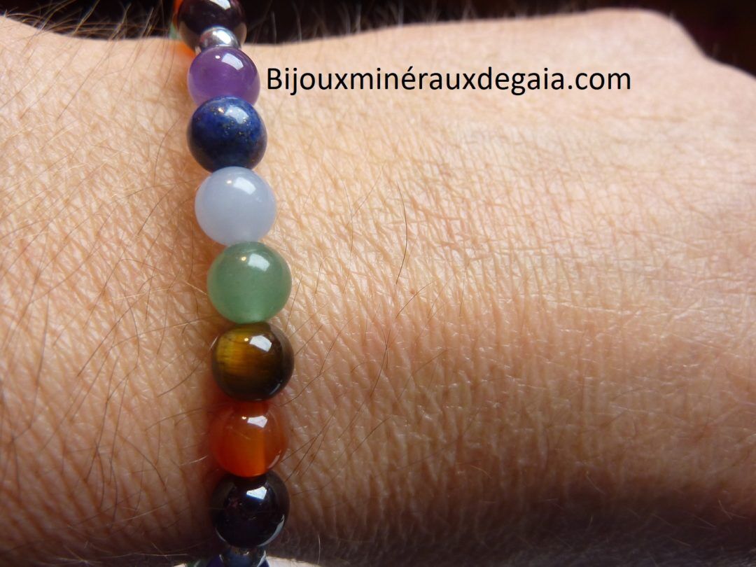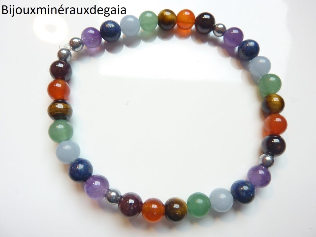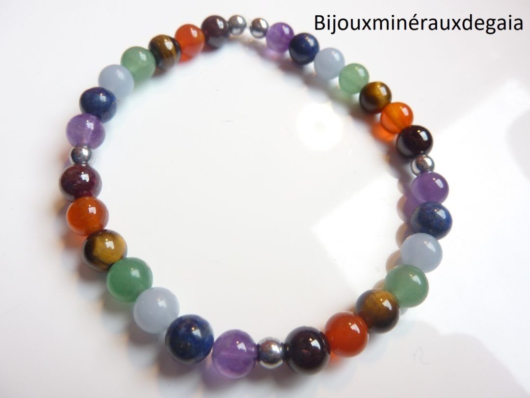 Bracelet 7 CHAKRAS Améthyste-aventurine-cornaline-hématite-oeil de tigre-lapis lazuli-angélite-grenat.