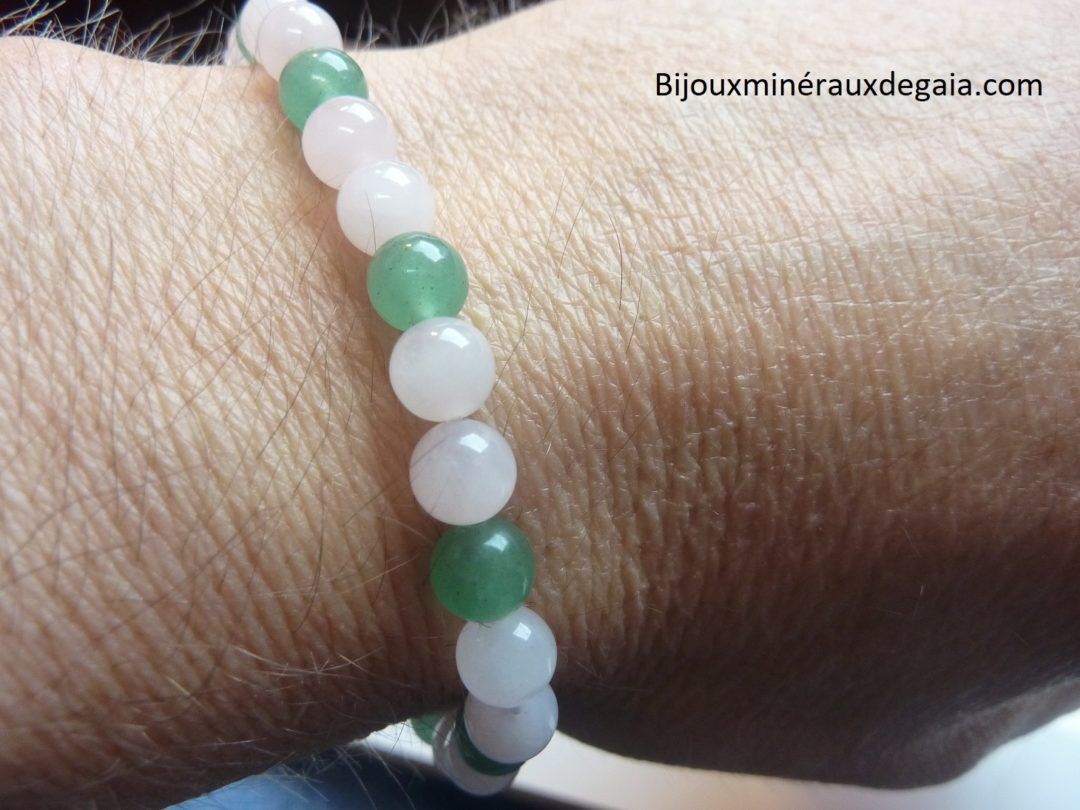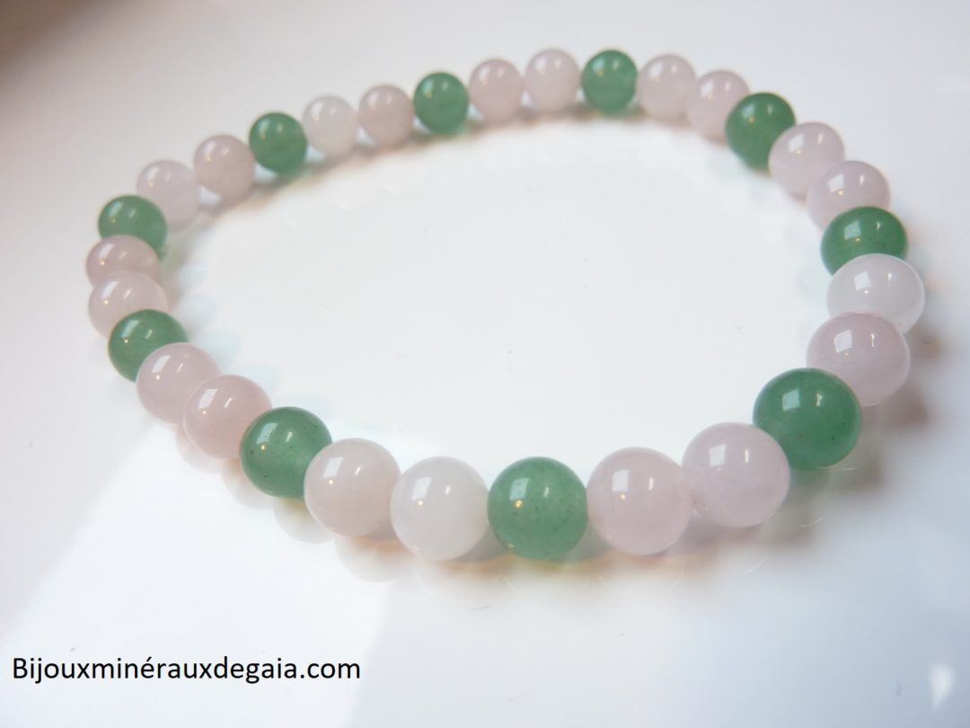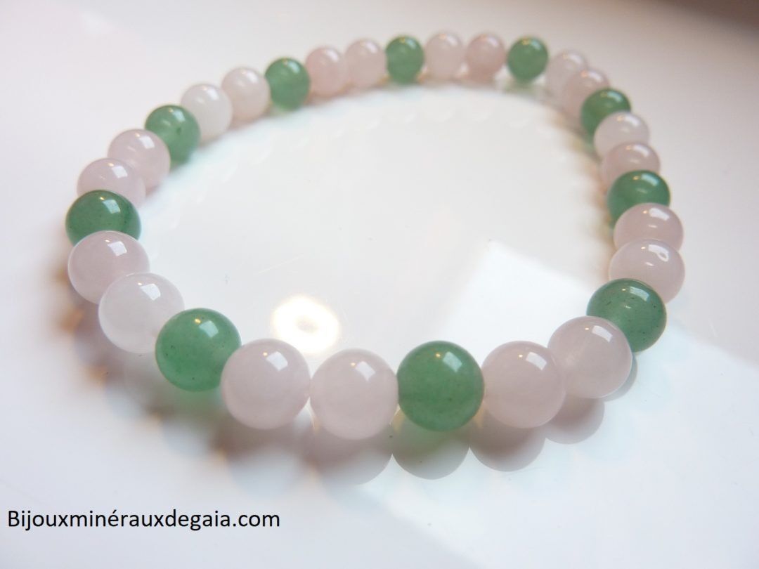 Bracelet Quartz rose-Aventurine verte perles rondes 6 mm