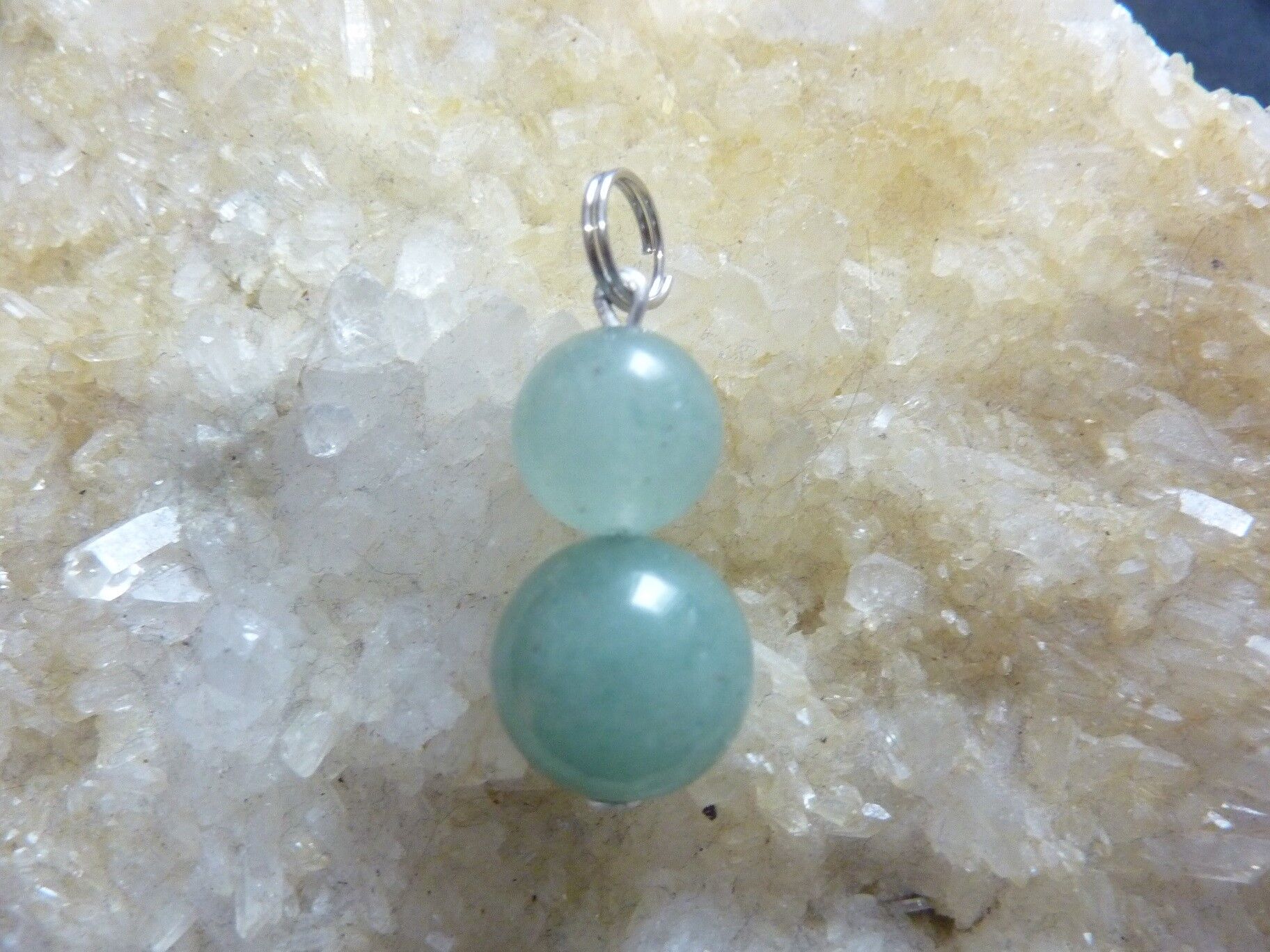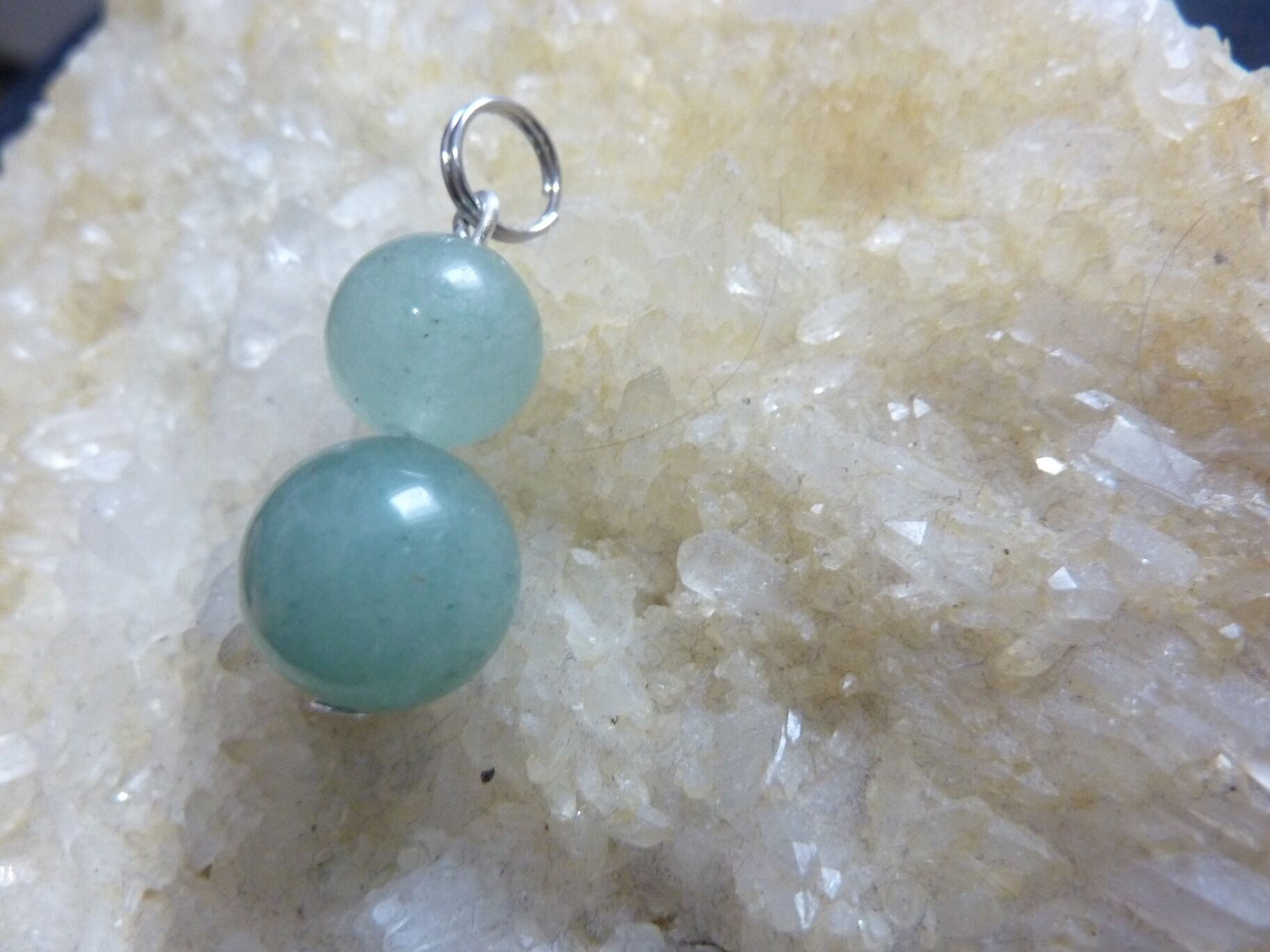 PENDENTIF AVENTURINE VERTE QUARTZ PERLES RONDES 10 ET 13 MM