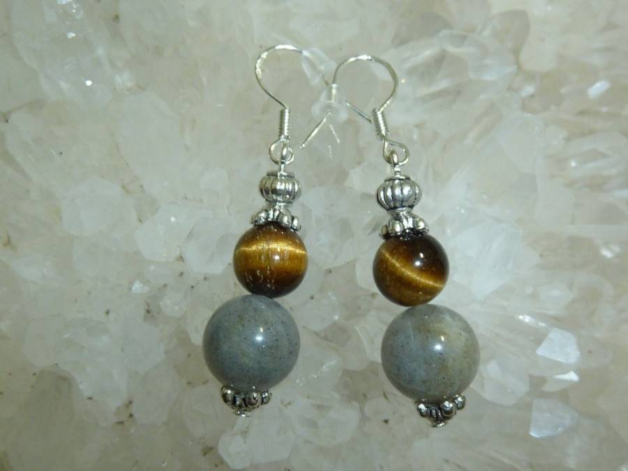 BOUCLES D’OREILLES PROTECTION EXTREME OEIL DE TIGRE-LABRADORITE