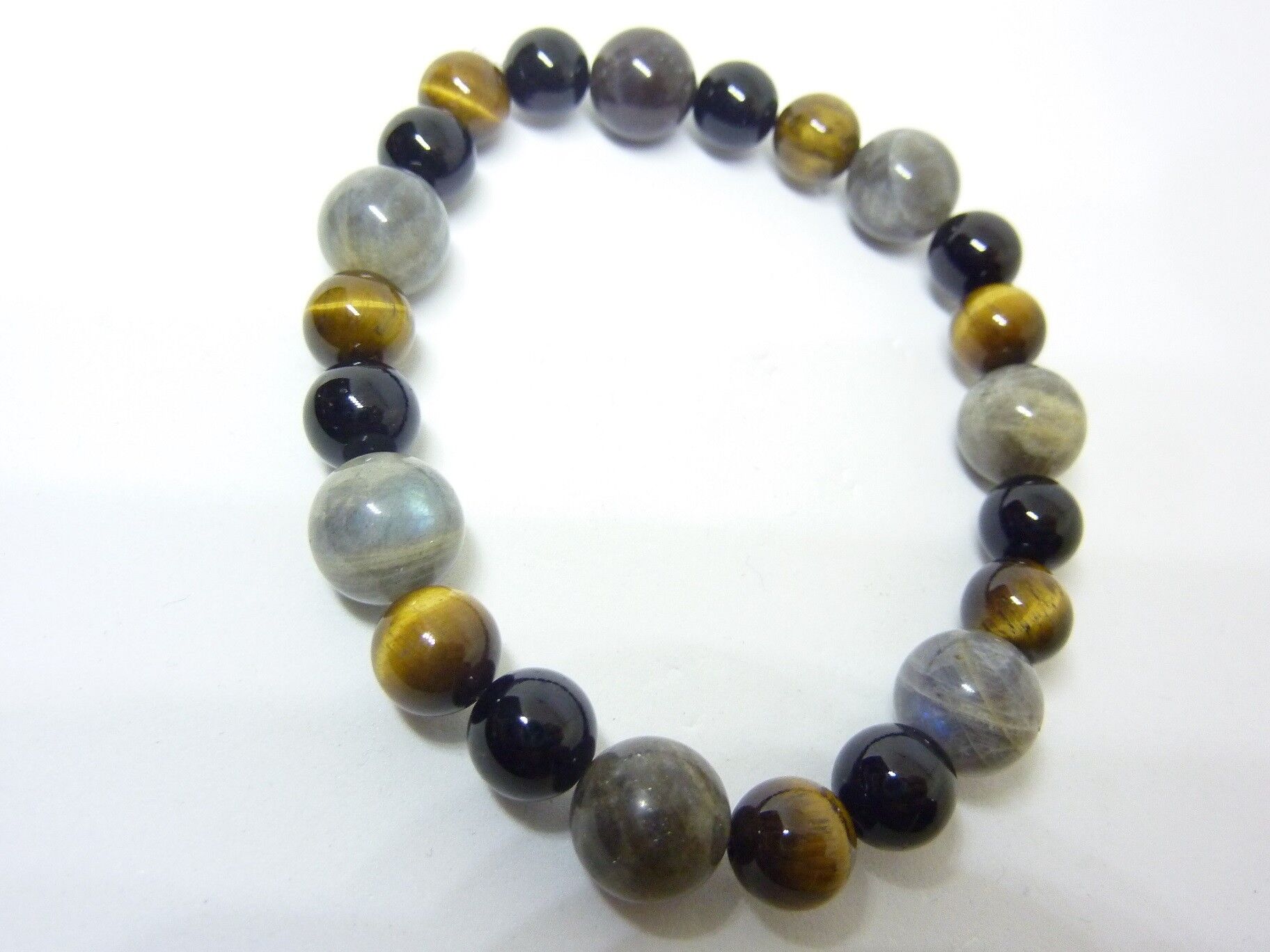 Vous recevrez un Bracelet protection extreme Oeil de tigre-Labradorite-tourmaline noire de qualité similaire
