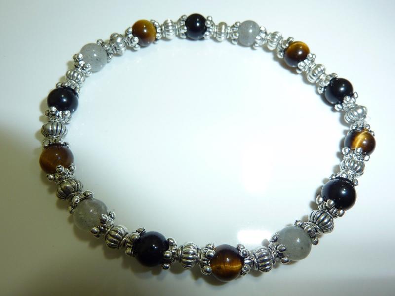 Photo non contractuelle ,pourtant vous recevrez Bracelet Oeil de tigre-Labradorite-Obsidienne oeil céleste – Perles rondes 6 mm de qualité identique