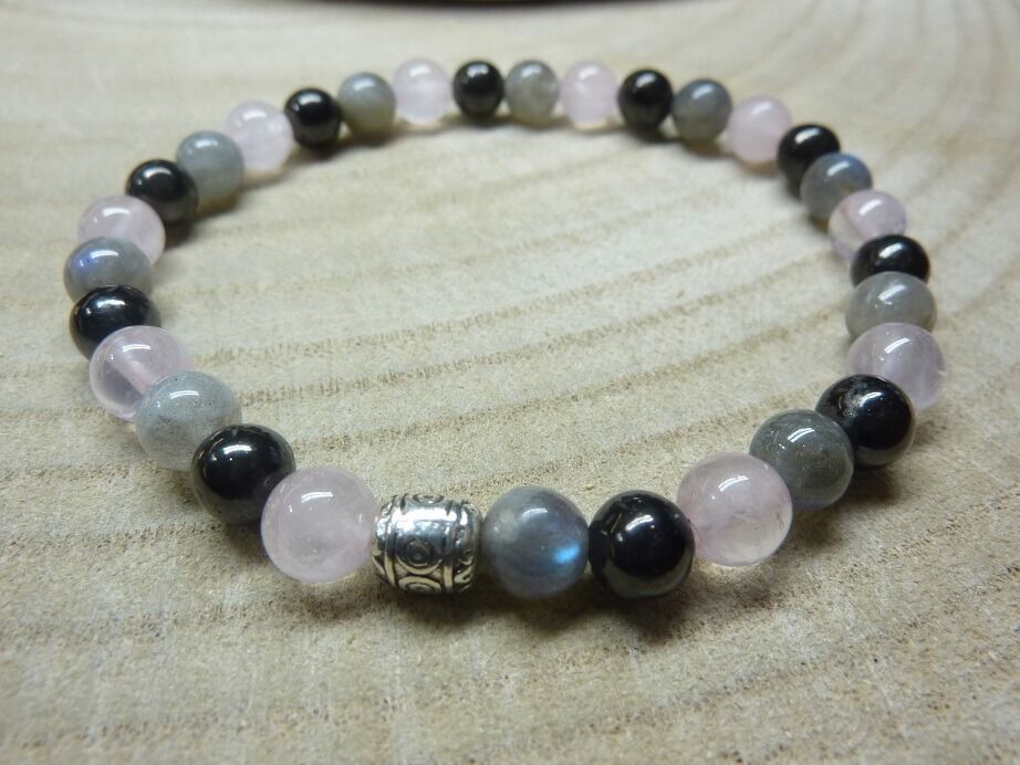Bracelet Shungite-Labradorite-Quartz rose – perles rondes 6 mm