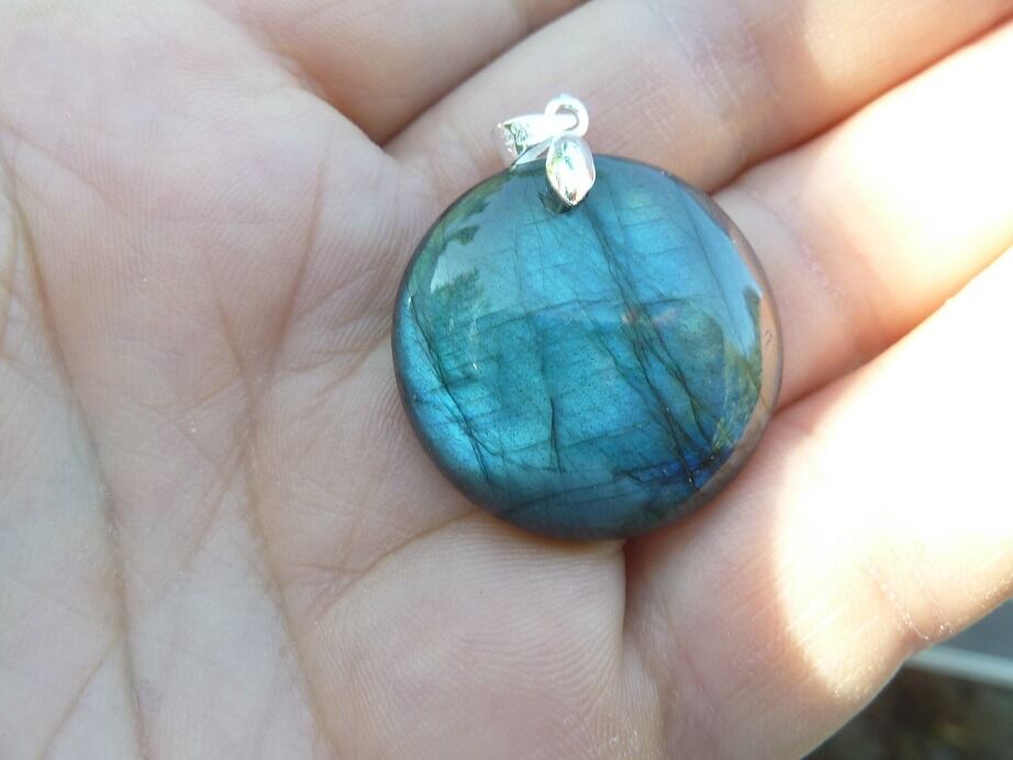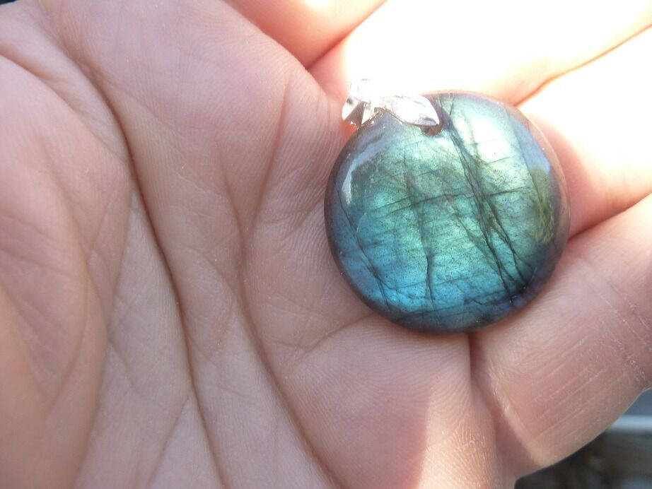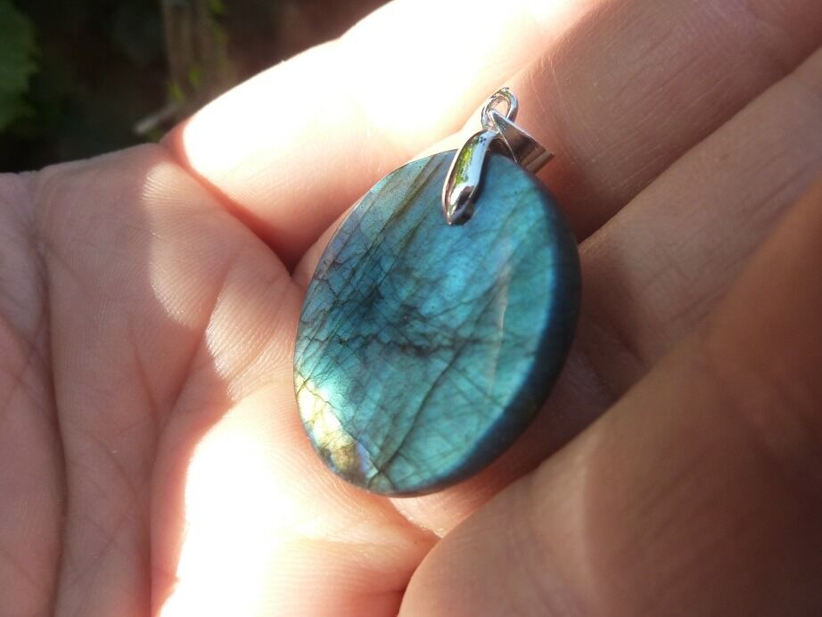 Livré avec collier cordon en coton ciré solide et durable longueur 58 cm + 4 cm ,comme les autres pendentifs en Labradorite du site !