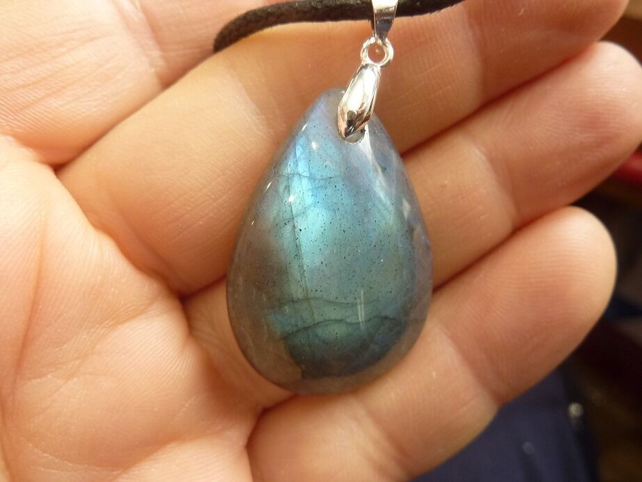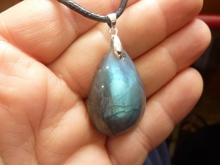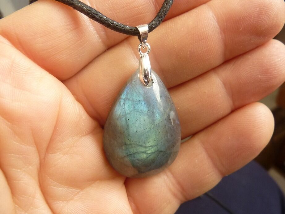Livré avec collier cordon en coton ciré solide et durable longueur 58 cm + 4 cm ,comme les autres pendentifs en Labradorite du site !