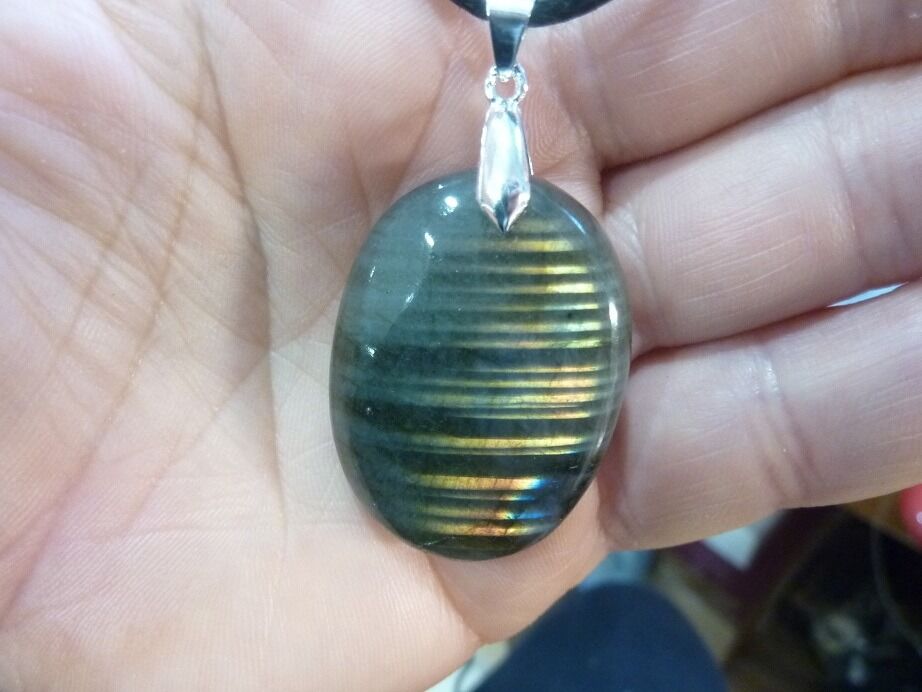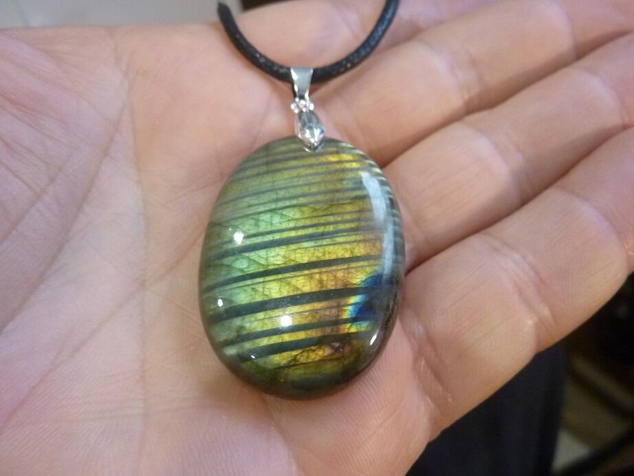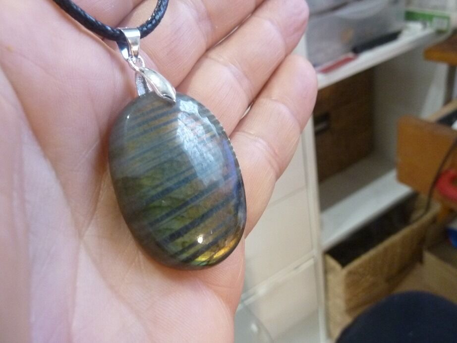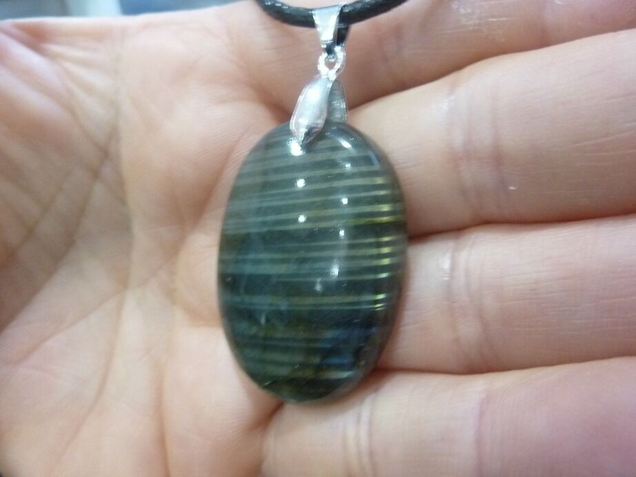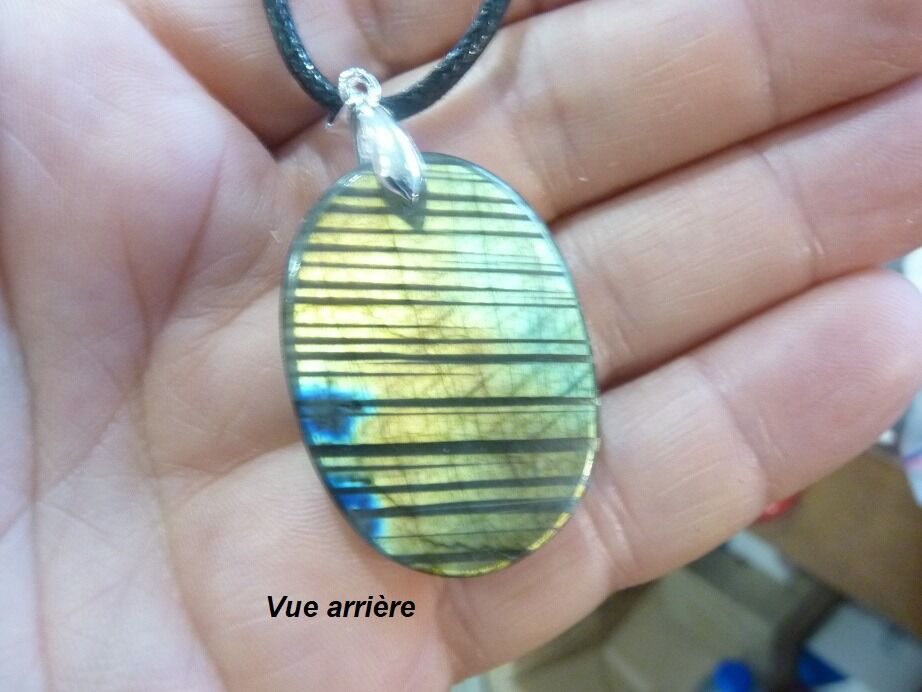 Livré avec collier cordon en coton ciré solide et durable longueur 58 cm + 4 cm ,comme les autres pendentifs en Labradorite du site !