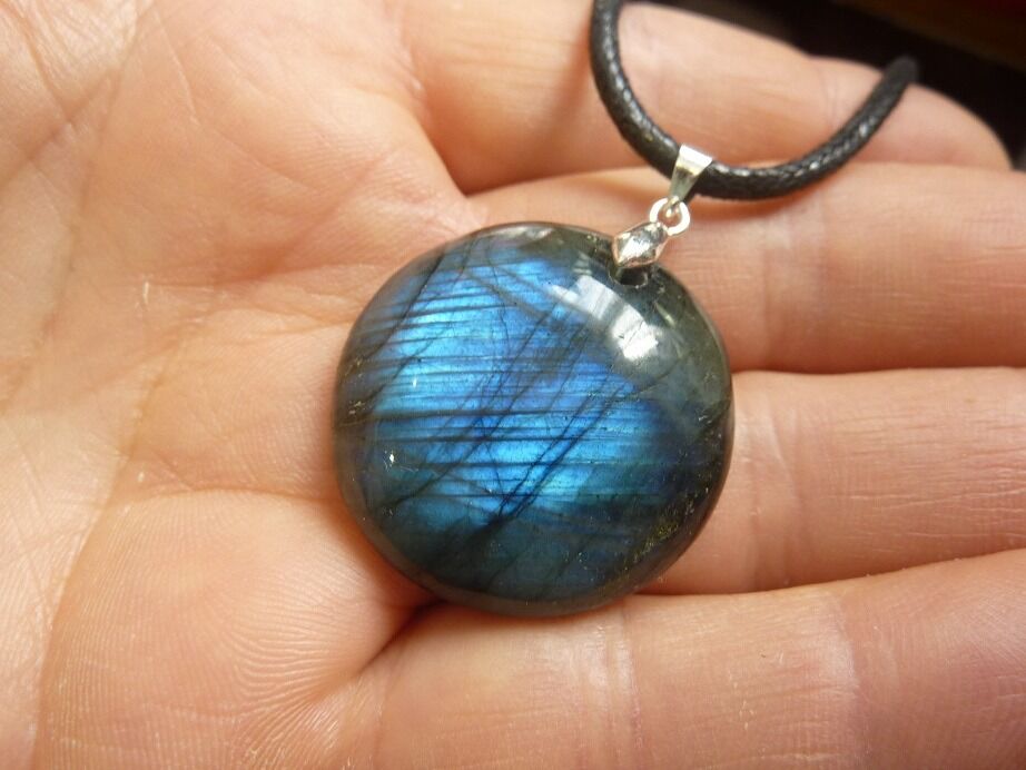 1. Livré avec collier cordon en coton ciré solide et durable longueur  58 cm + 4 cm ,comme les autres pendentifs en Labradorite du site !