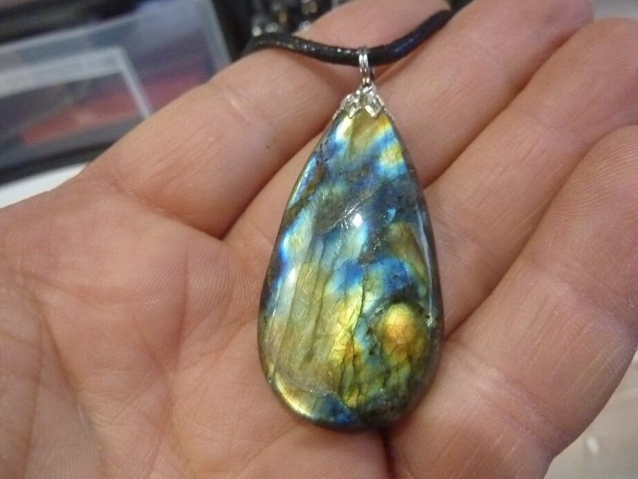 Livré avec collier cordon en coton ciré solide et durable longueur 58 cm + 4 cm ,comme les autres pendentifs en Labradorite du site !