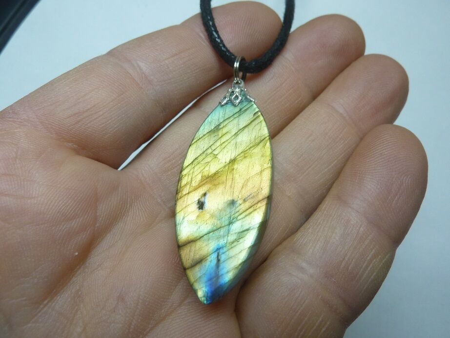 1. Livré avec collier cordon en coton ciré solide et durable longueur  58 cm + 4 cm ,comme les autres pendentifs en Labradorite du site !
