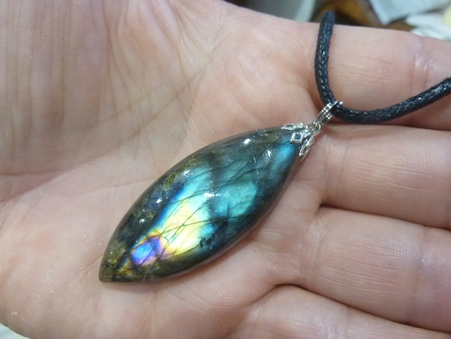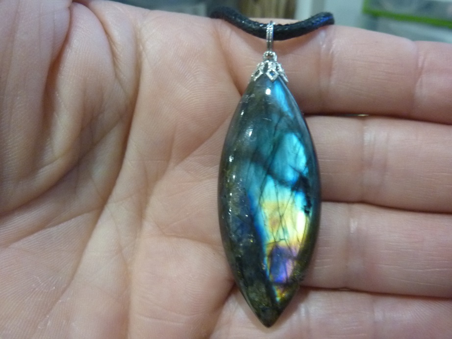 - Livré avec collier cordon en coton ciré solide et durable longueur 58 cm + 4 cm ,comme les autres pendentifs en Labradorite du site !