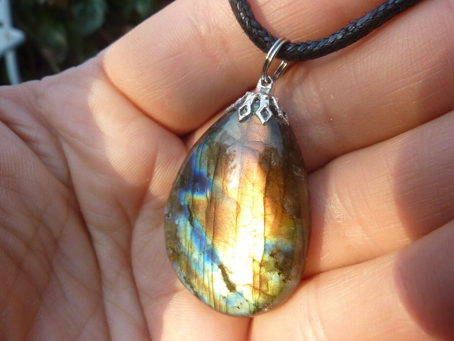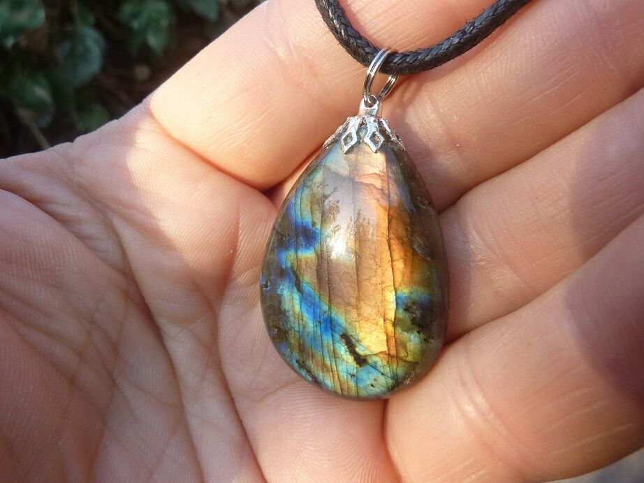 - Livré avec collier cordon en coton ciré solide et durable longueur 58 cm + 4 cm ,comme les autres pendentifs en Labradorite du site !