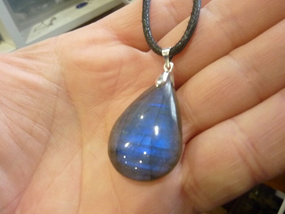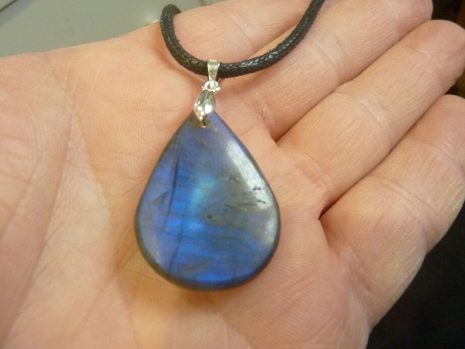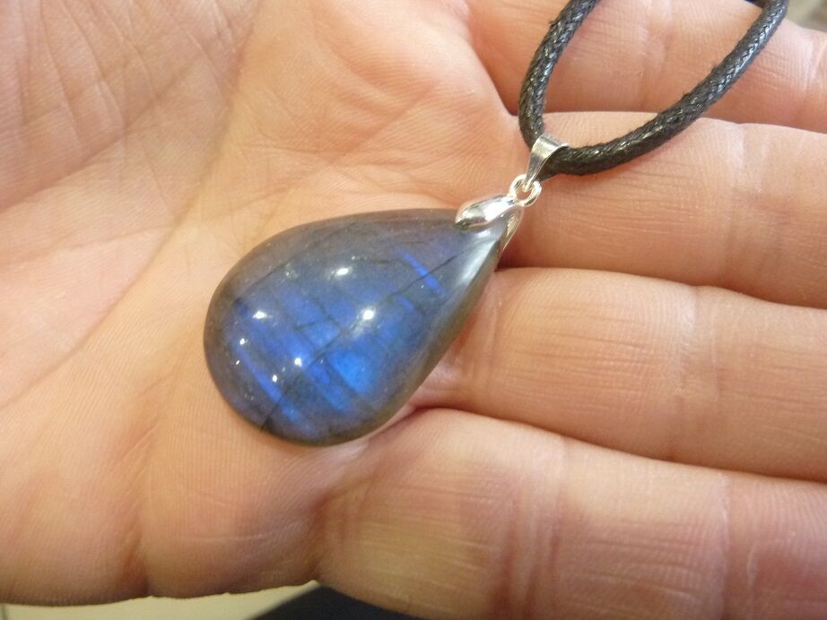 Livré avec collier cordon en coton ciré solide et durable longueur 58 cm + 4 cm ,comme les autres pendentifs en Labradorite du site !