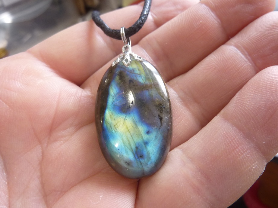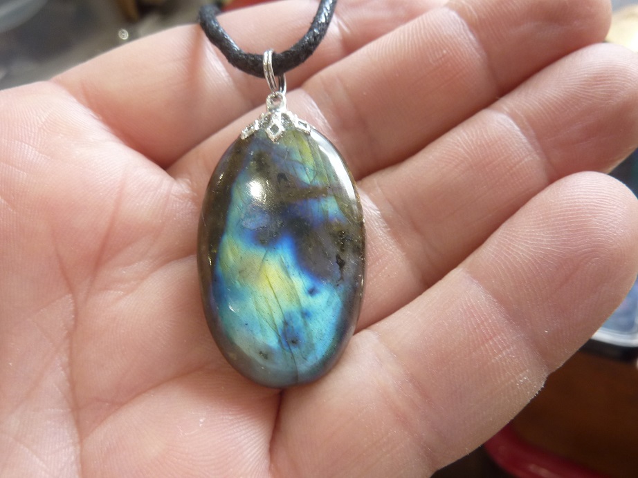 - Livré avec collier cordon en coton ciré solide et durable longueur 58 cm + 4 cm ,comme les autres pendentifs en Labradorite du site !