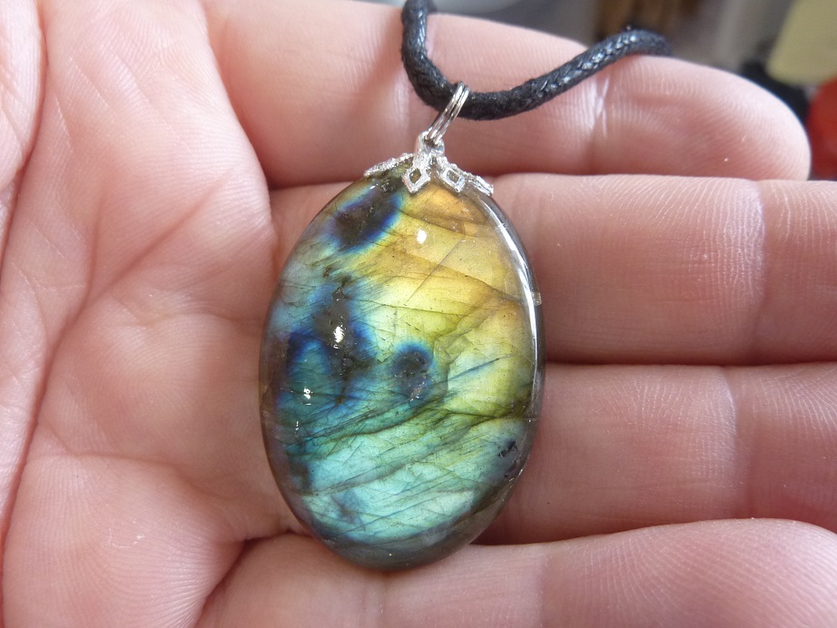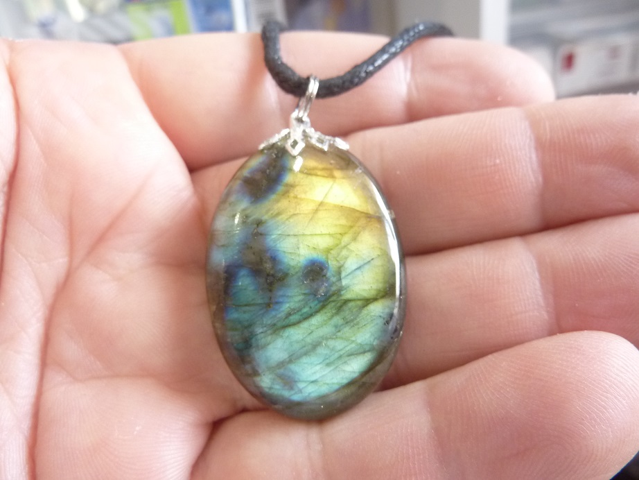 - Livré avec collier cordon en coton ciré solide et durable longueur 58 cm + 4 cm ,comme les autres pendentifs en Labradorite du site !