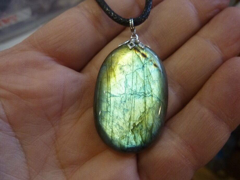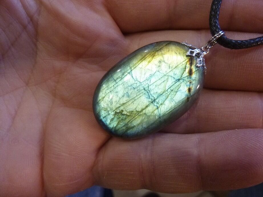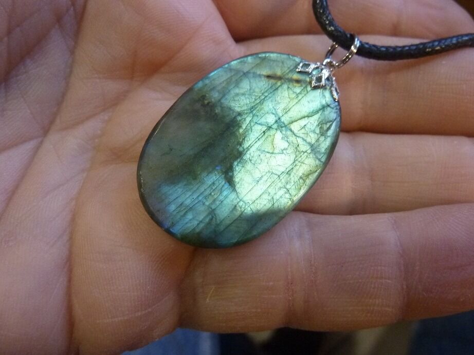 Livré avec collier cordon en coton ciré solide et durable longueur 58 cm + 4 cm ,comme les autres pendentifs en Labradorite du site !