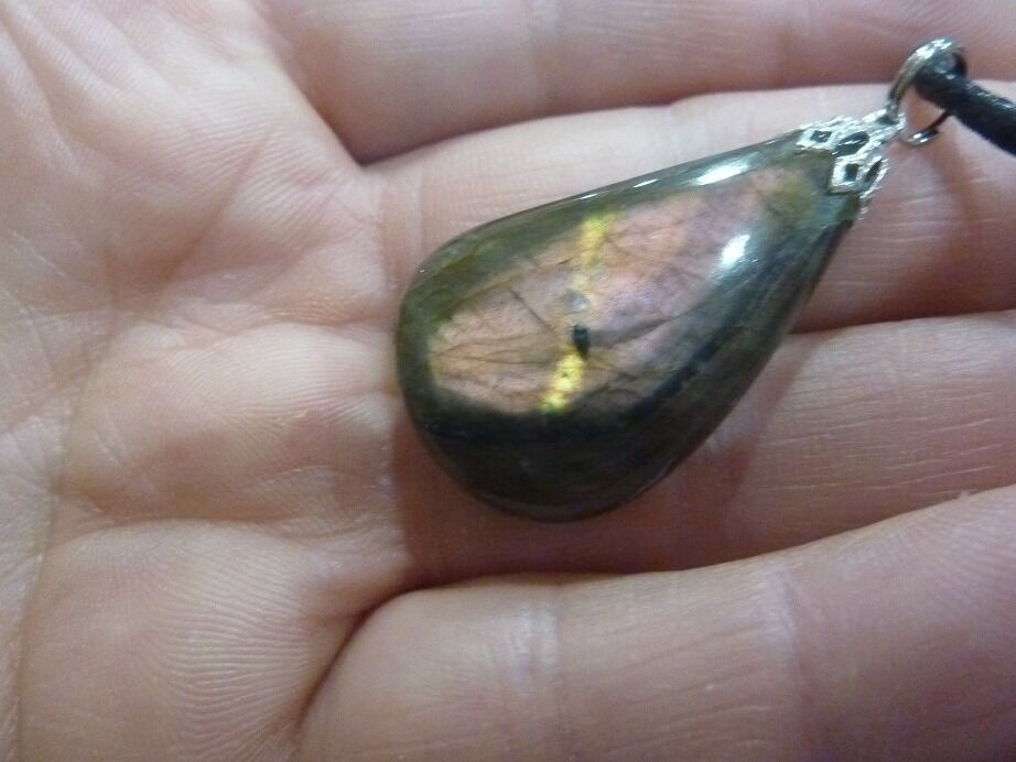 Livré avec collier cordon en coton ciré solide et durable longueur 58 cm + 4 cm ,comme les autres pendentifs en Labradorite du site !