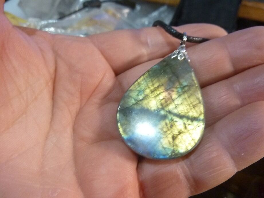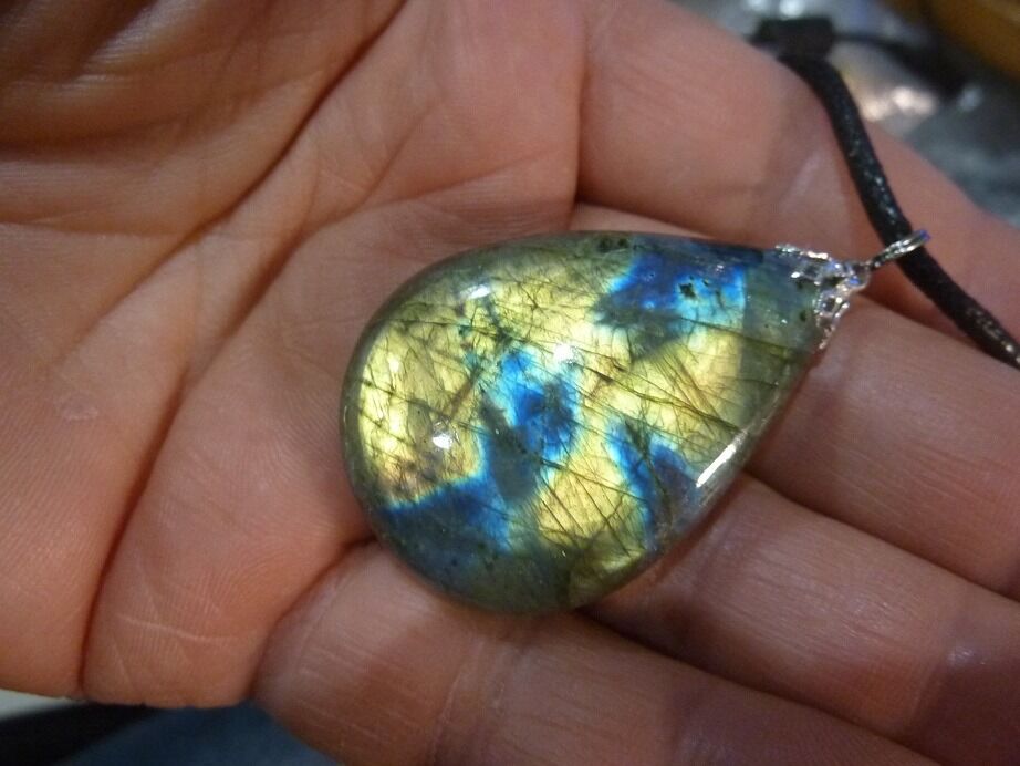 Livré avec collier cordon en coton ciré solide et durable longueur 58 cm + 4 cm ,comme les autres pendentifs en Labradorite du site !