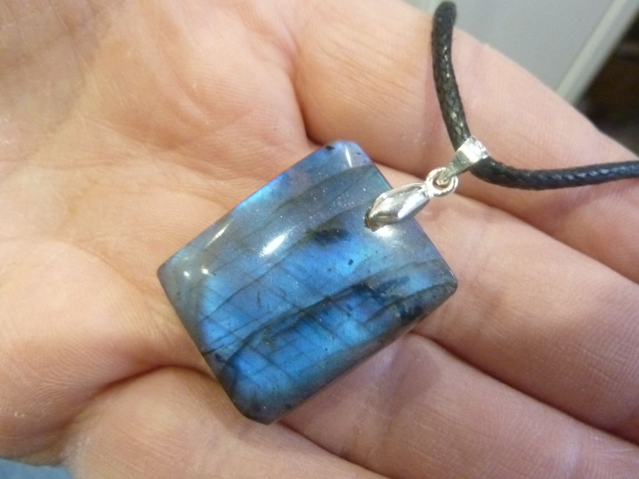 1. Livré avec collier cordon en coton ciré solide et durable longueur  58 cm + 4 cm ,comme les autres pendentifs en Labradorite du site !