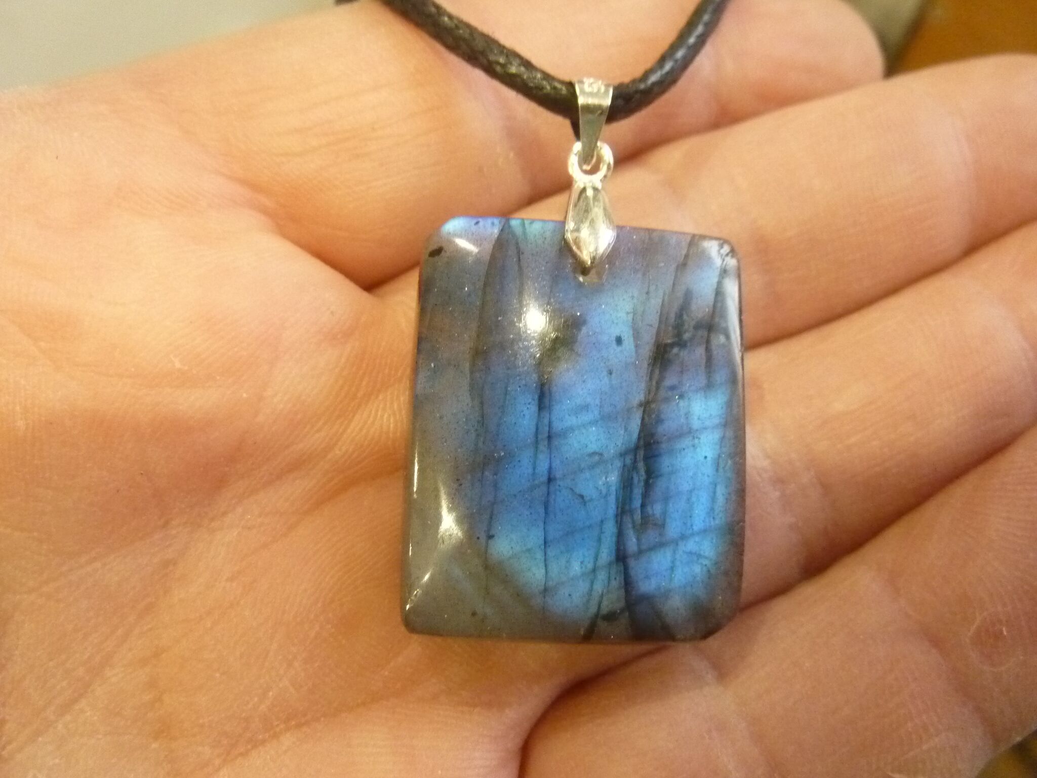 Livré avec collier cordon en coton ciré solide et durable longueur 58 cm + 4 cm ,comme les autres pendentifs en Labradorite du site !