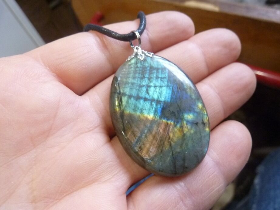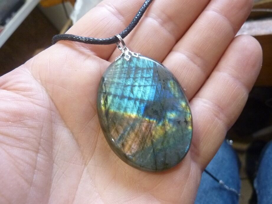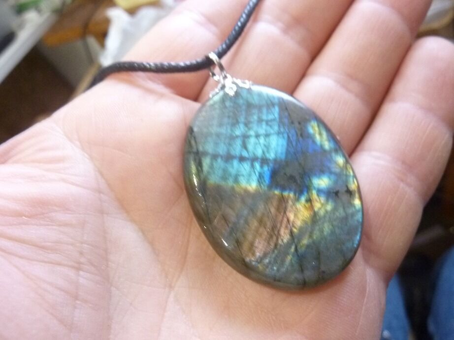 Livré avec collier cordon en coton ciré solide et durable longueur 58 cm + 4 cm ,comme les autres pendentifs en Labradorite du site !