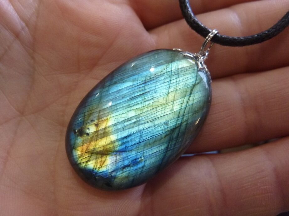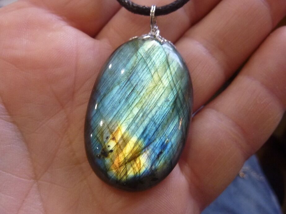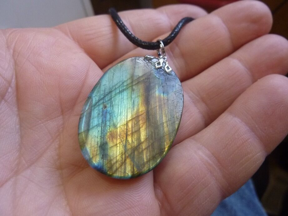 Livré avec collier cordon en coton ciré solide et durable longueur 58 cm + 4 cm ,comme les autres pendentifs en Labradorite du site !