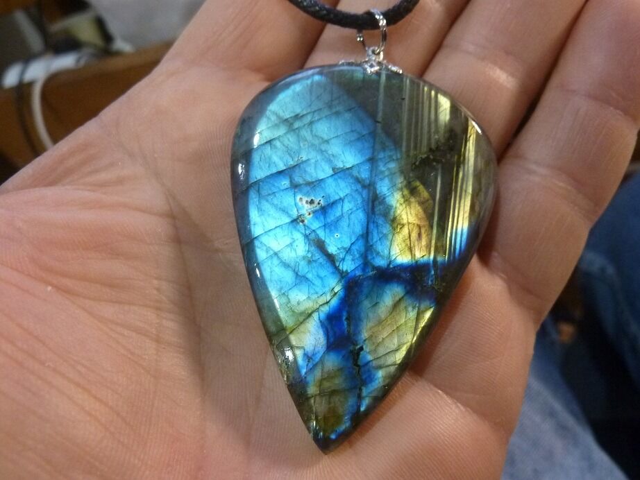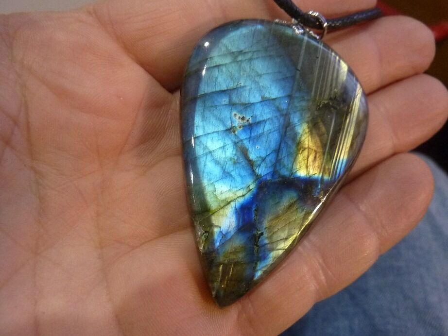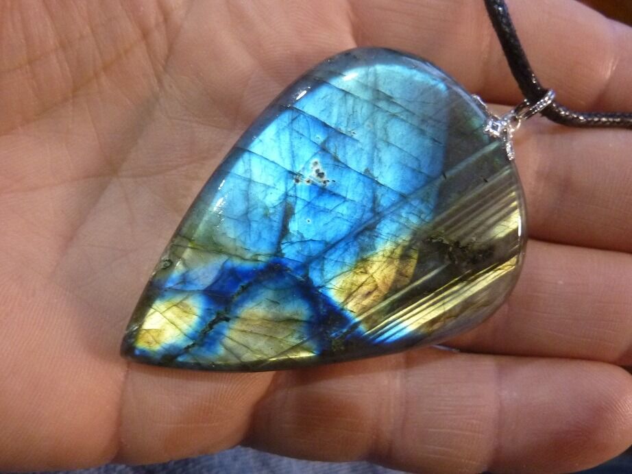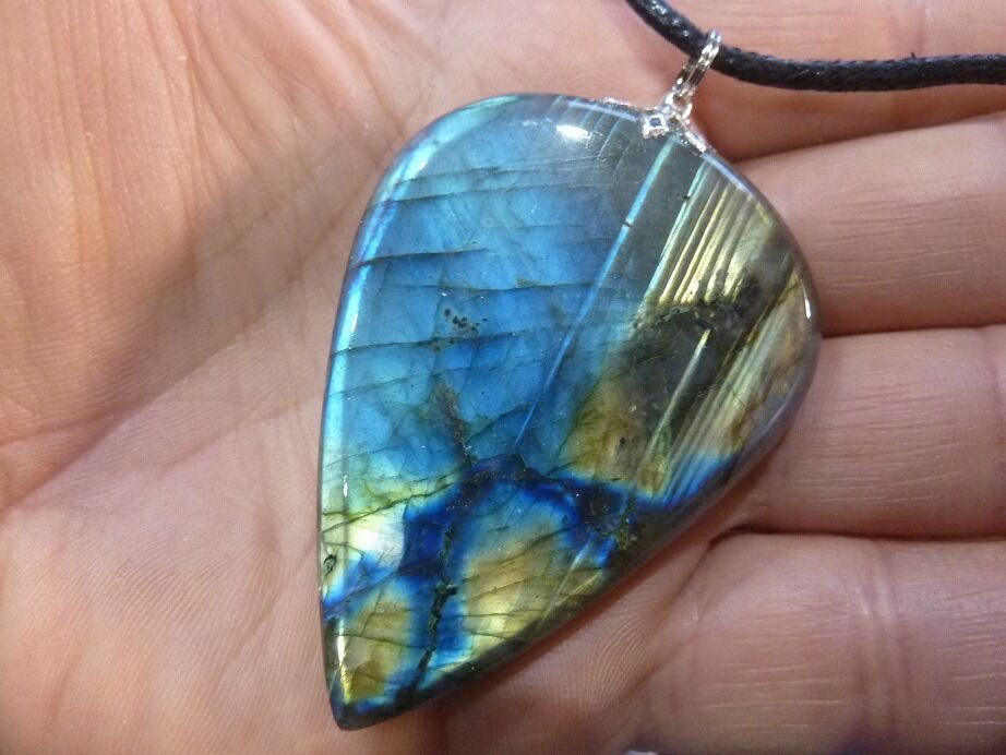 Livré avec collier cordon en coton ciré solide et durable longueur 58 cm + 4 cm ,comme les autres pendentifs en Labradorite du site !