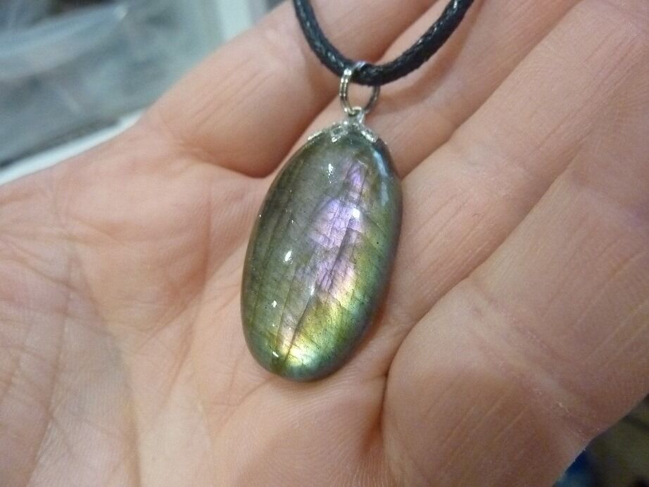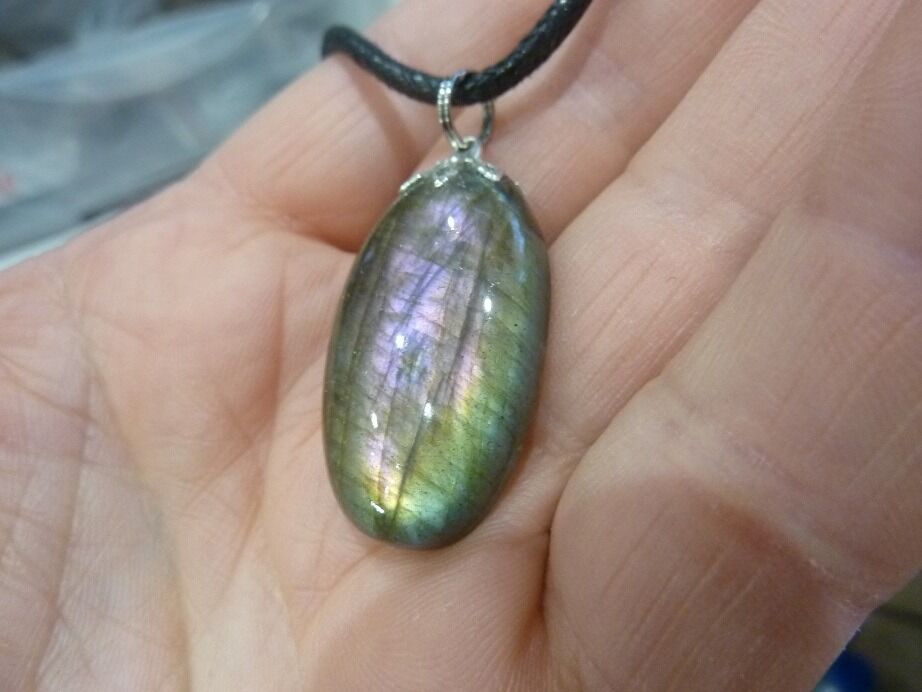 Livré avec collier cordon en coton ciré solide et durable longueur 58 cm + 4 cm ,comme les autres pendentifs en Labradorite du site !