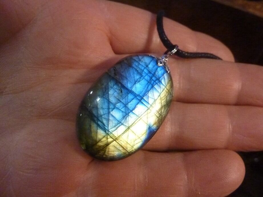 -  Livré avec collier cordon en coton ciré solide et durable longueur 58 cm + 4 cm ,comme les autres pendentifs en Labradorite du site !