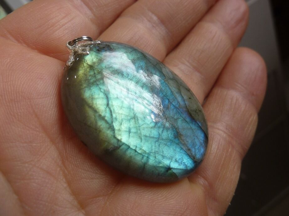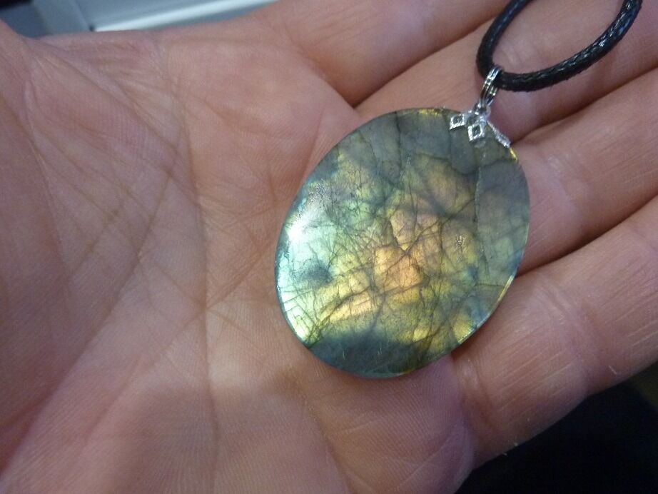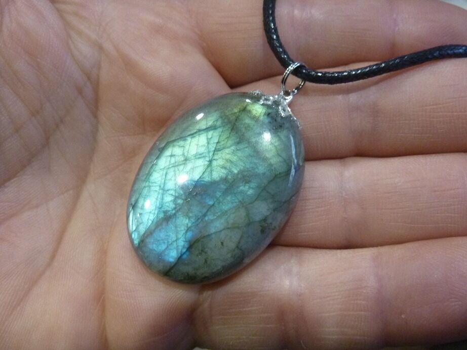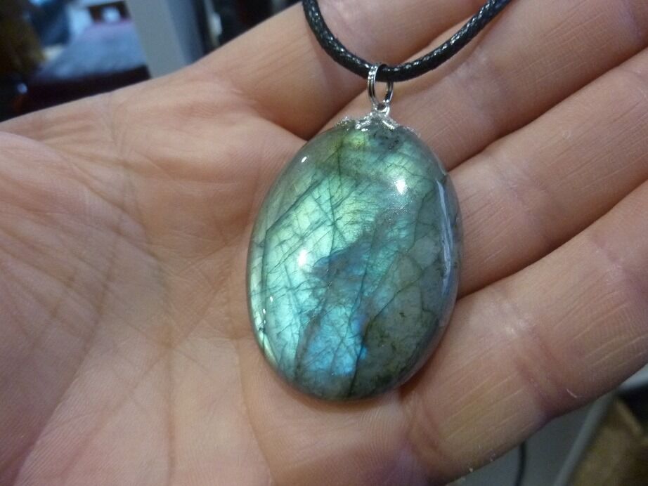 Livré avec collier cordon en coton ciré solide et durable longueur 58 cm + 4 cm ,comme les autres pendentifs en Labradorite du site !